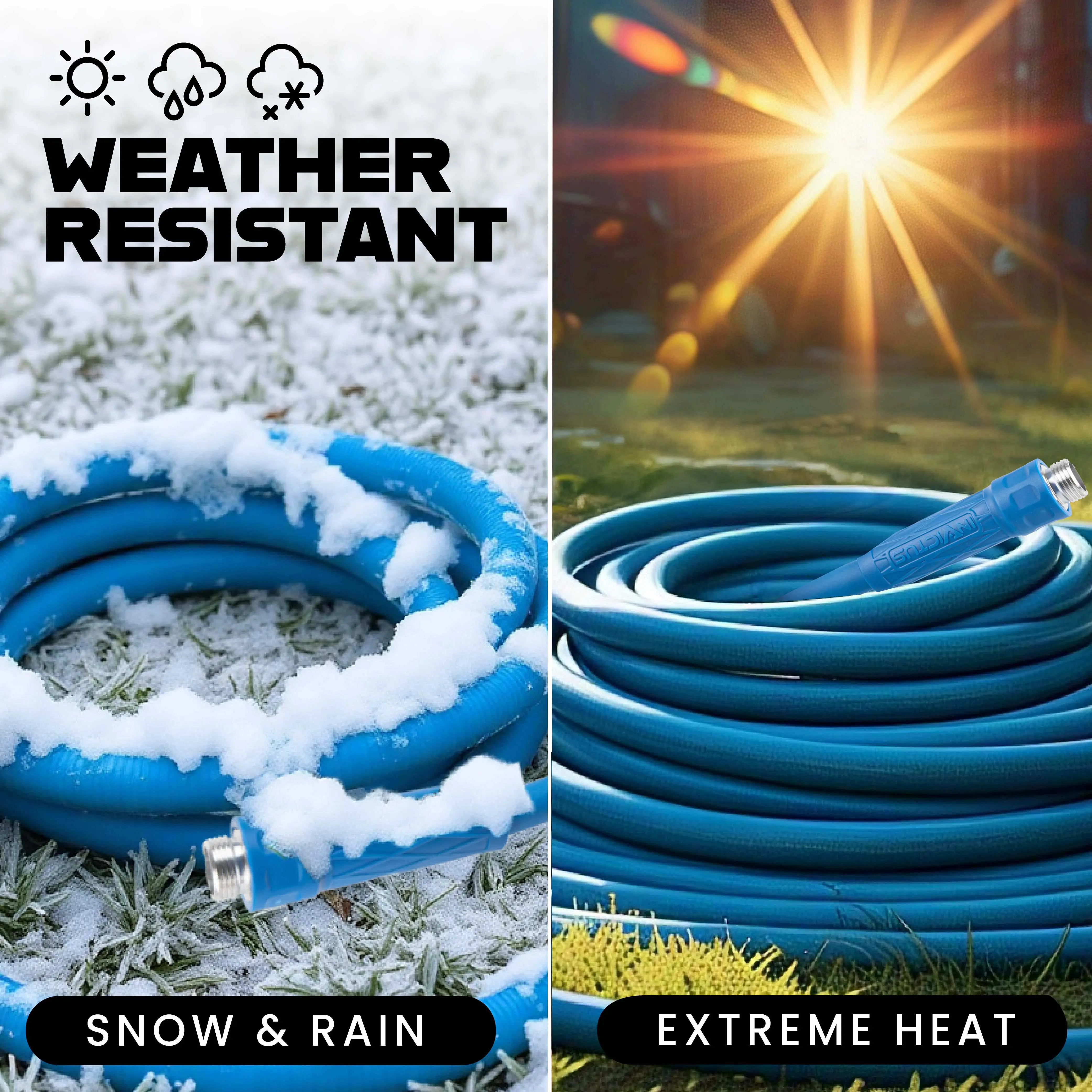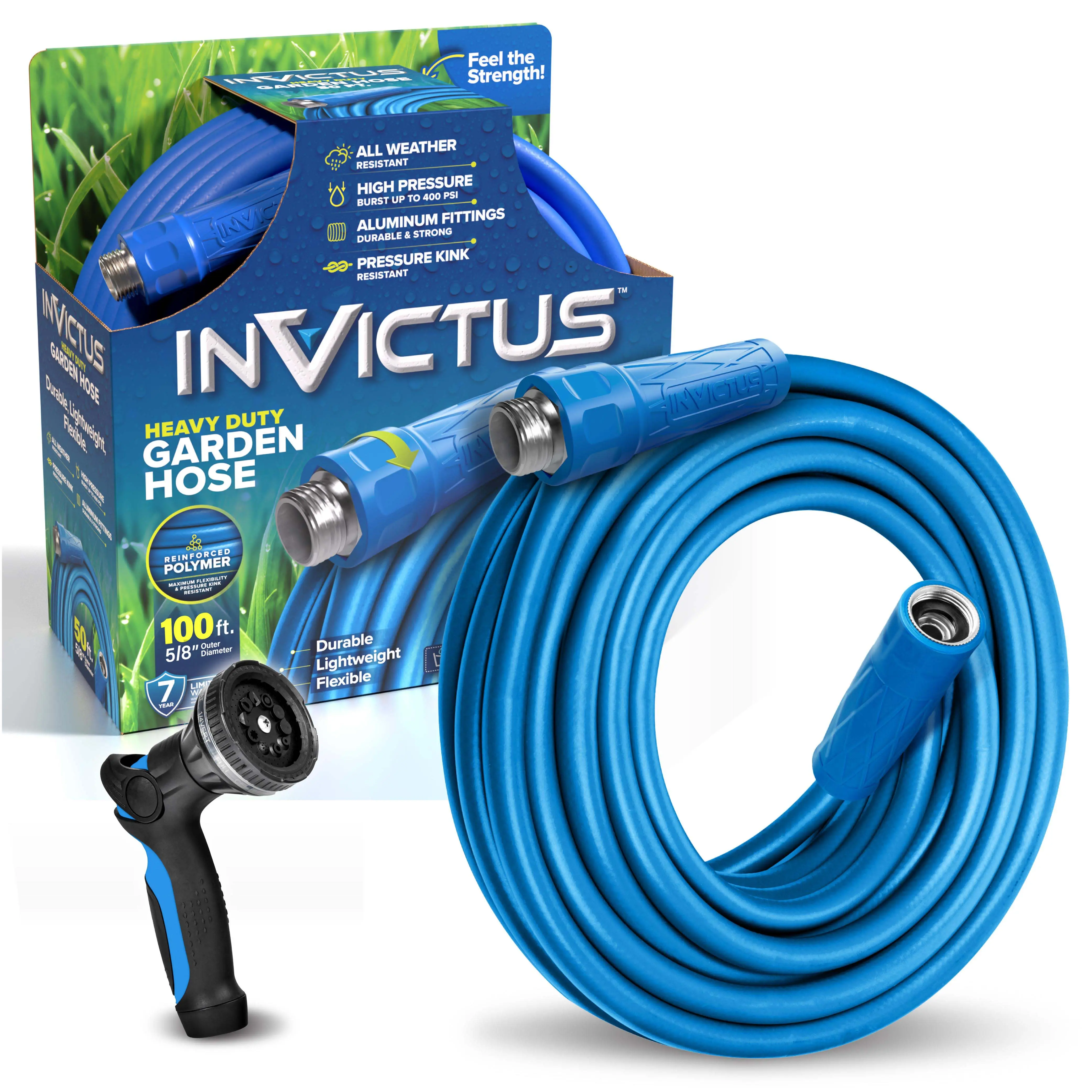 The Invictus Blue garden hose is engineered with a reinforced inner layer and a flexible outer cover, making it ultra-durable, rust-proof, leak-proof, and puncture-resistant. Designed to withstand all weather conditions, this tough water hose is built for the demands of everyday gardening.