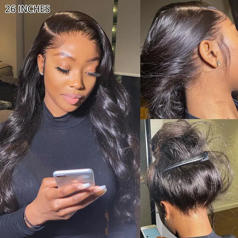 I love the snug fit! It stays in place all day without shifting. The 360 lace frontal blends seamlessly with my skin so natural-looking! The pre-cut lace saved me so much time, and the edges lay flawlessly. The body wave texture is soft, bouncy, and holds curls beautifully. No glue, no mess this glueless wig is a game changer. The bleached knots really give that scalp look super realistic. It fits comfortably and doesn’t feel heavy at all. The hairline is undetectable so I can wear a messy bun.