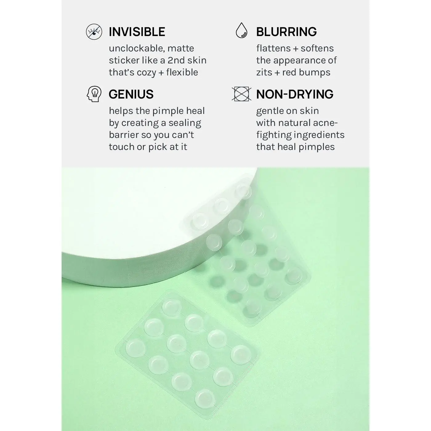 AOA Skin Acne Patches are the most innovative pimple patches on the market! They are super INVISIBLE and STAYS PUT on the skin, so you don't have to worry about them falling off! They protect your blemishes from dirt and germs getting inside while speeding up the healing process!