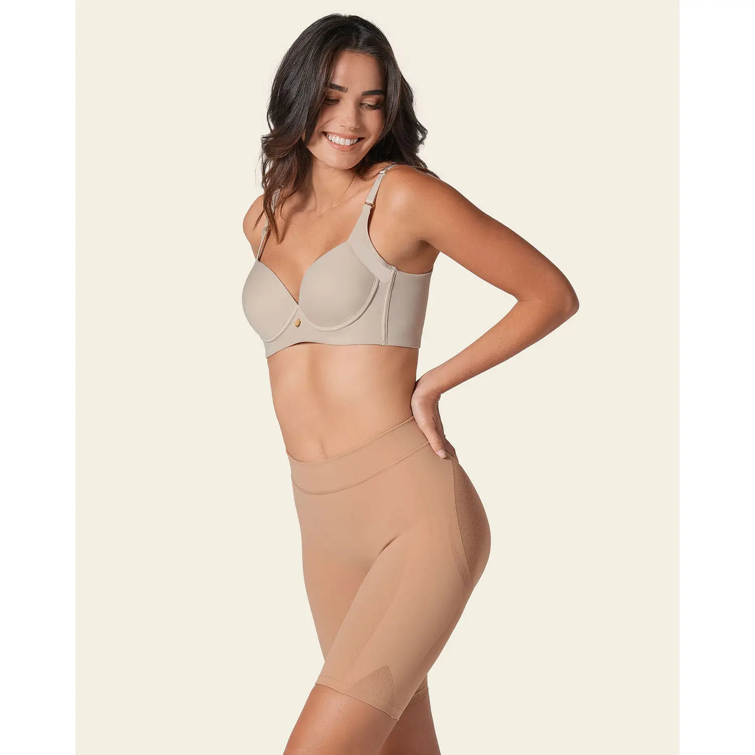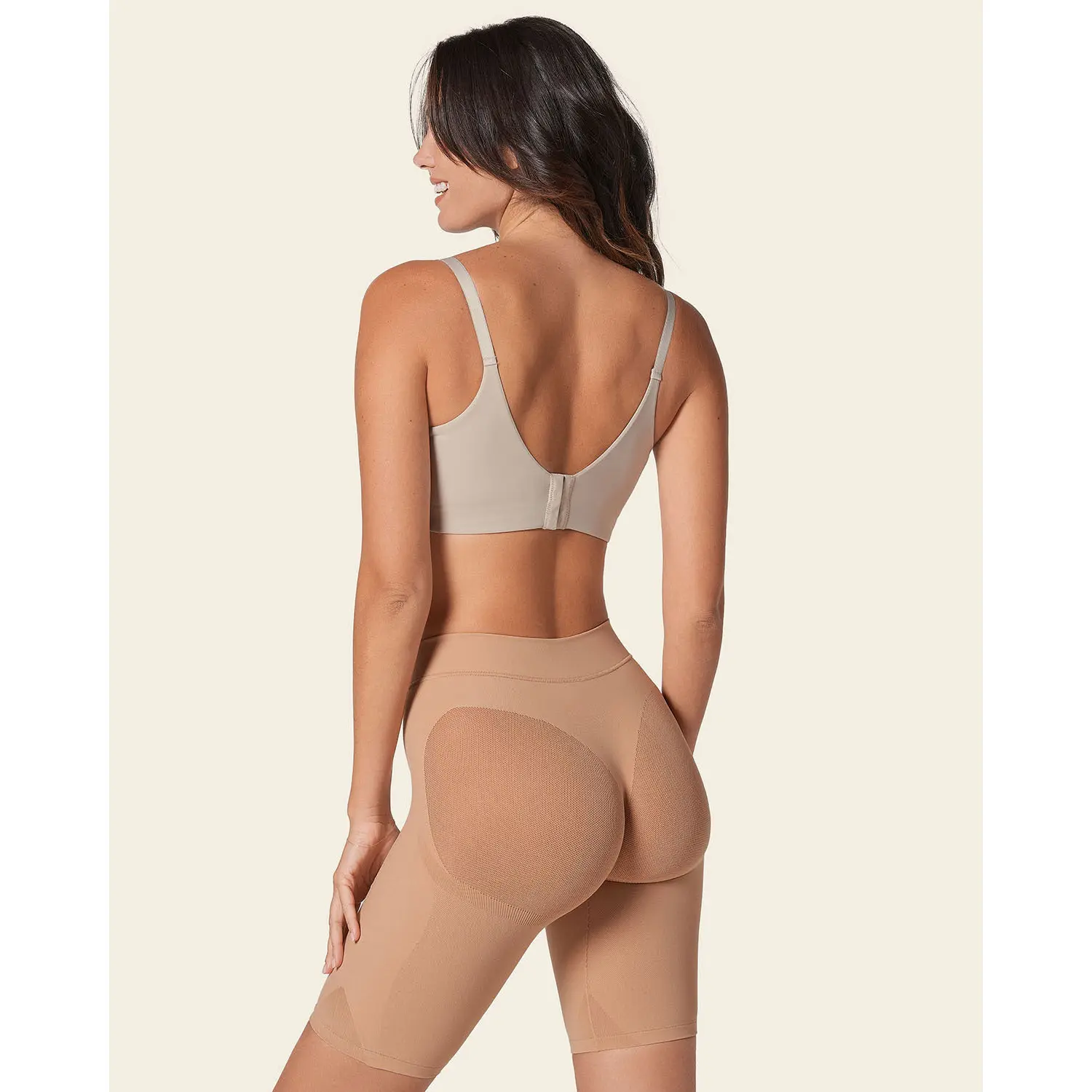 This garment provides moderate compression and a natural butt-lifting effect. It is designed for comfort and everyday smoothing and is not intended for customers seeking strong compression, firm control, or dramatic shaping results.