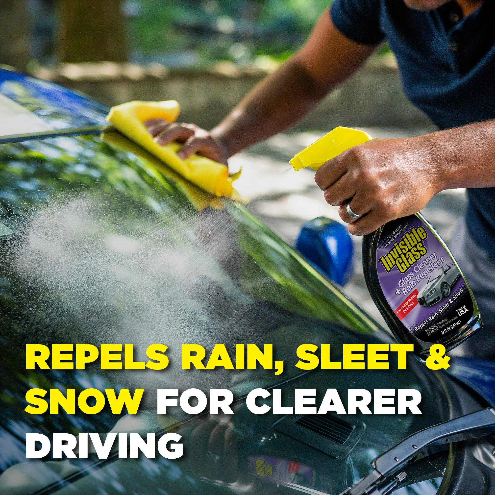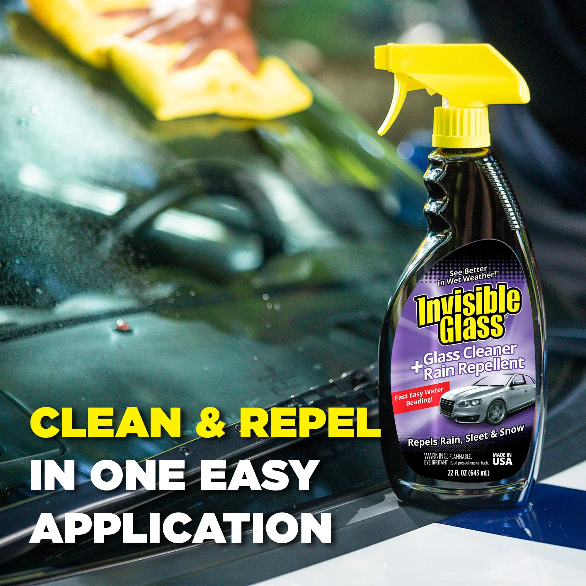 Clean & Repel prevents water from clinging to your glass. Water beads up and wicks away, ensuring your clear view.
