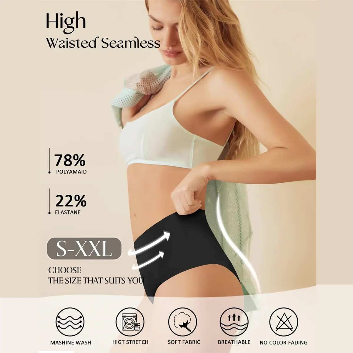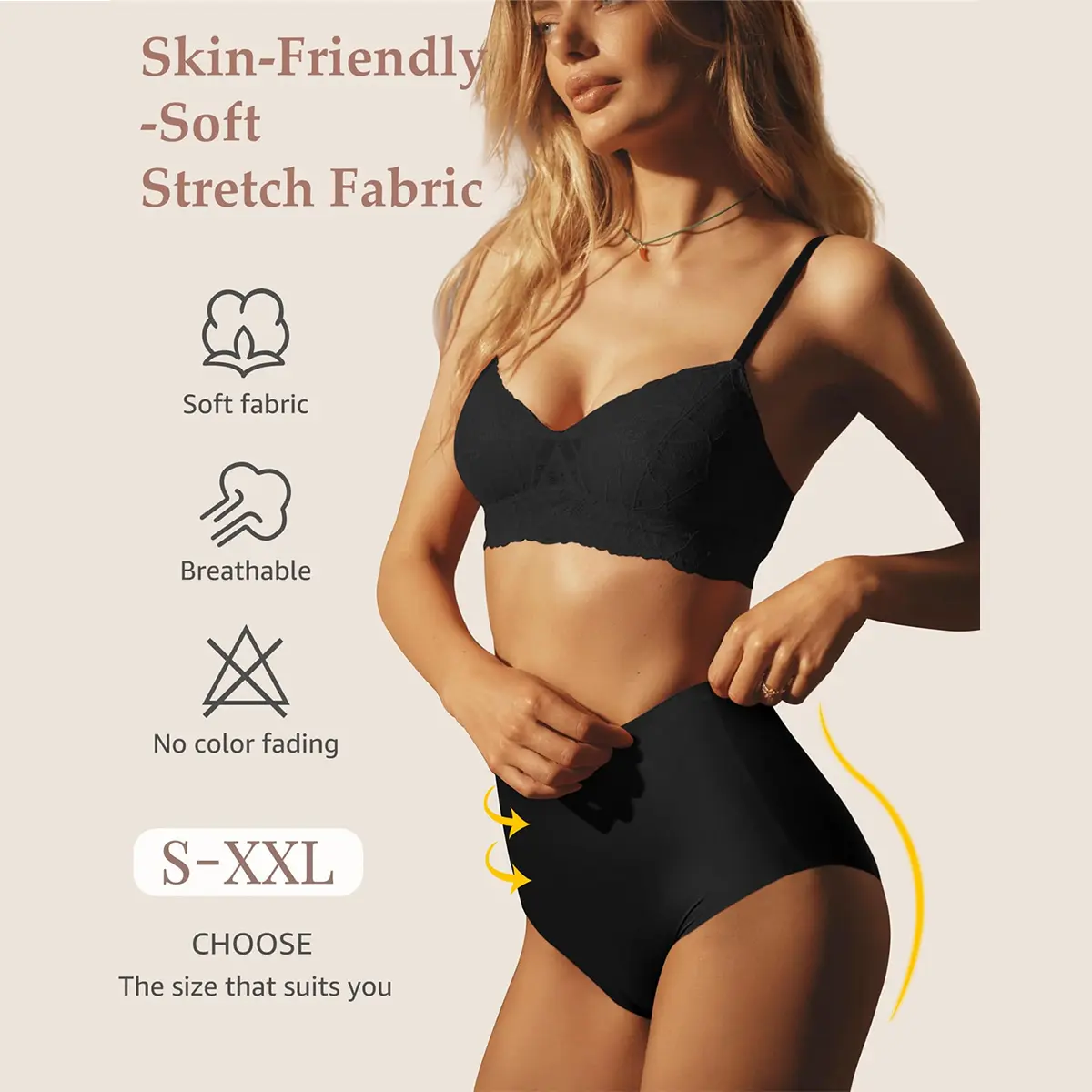 ·[Covering buttocks] --The full hip women's panties adopt the 3D hip suction design to increase the hip wrapping and pulling effect, ensure comfortable wearing without feeling bound, and effectively shape the body. Seamless high waist underwear has no feeling label, and will not cause skin irritation or skin allergy.