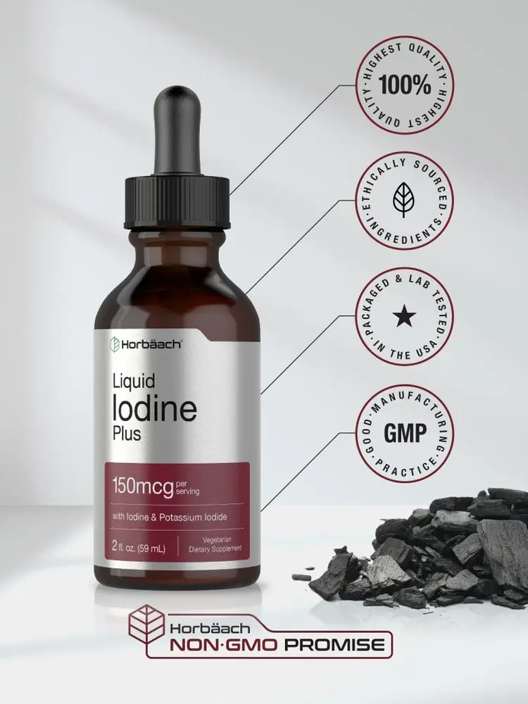 Horbaach offers a premium Liquid Iodine Supplement that is Non-GMO, Gluten-Free and scientifically crafted. Each serving delivers 150 mcg of Iodine (as Iodine and Potassium Iodide). It mixes easily with water and includes no Artificial Color, Artificial Flavor, Artificial Sweeteners or Preservatives. Pick up a bottle of our Liquid Iodine today and add it to your collection of vitamins and minerals!