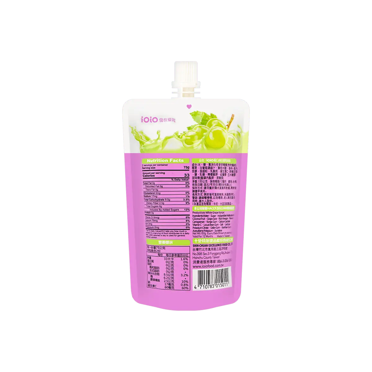 Indulge in the delightful chewy texture of IOIO Konjac Jelly! 🍇 Bursting with the sweet and refreshing taste of white grape, this 150g pack is your perfect guilt-free snack. Made in Taiwan with premium ingredients for an authentic taste experience. ✨