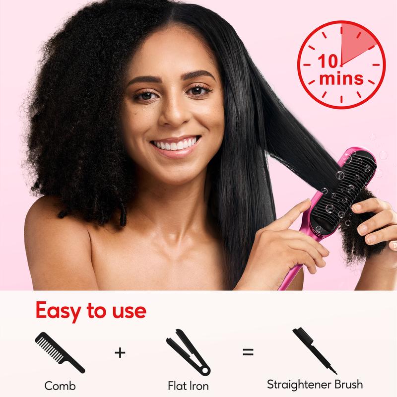 ·✨ Rapid Heating: Equipped with an MCH heater, this hair straightener brush heats up to 450°F in just 20 seconds.