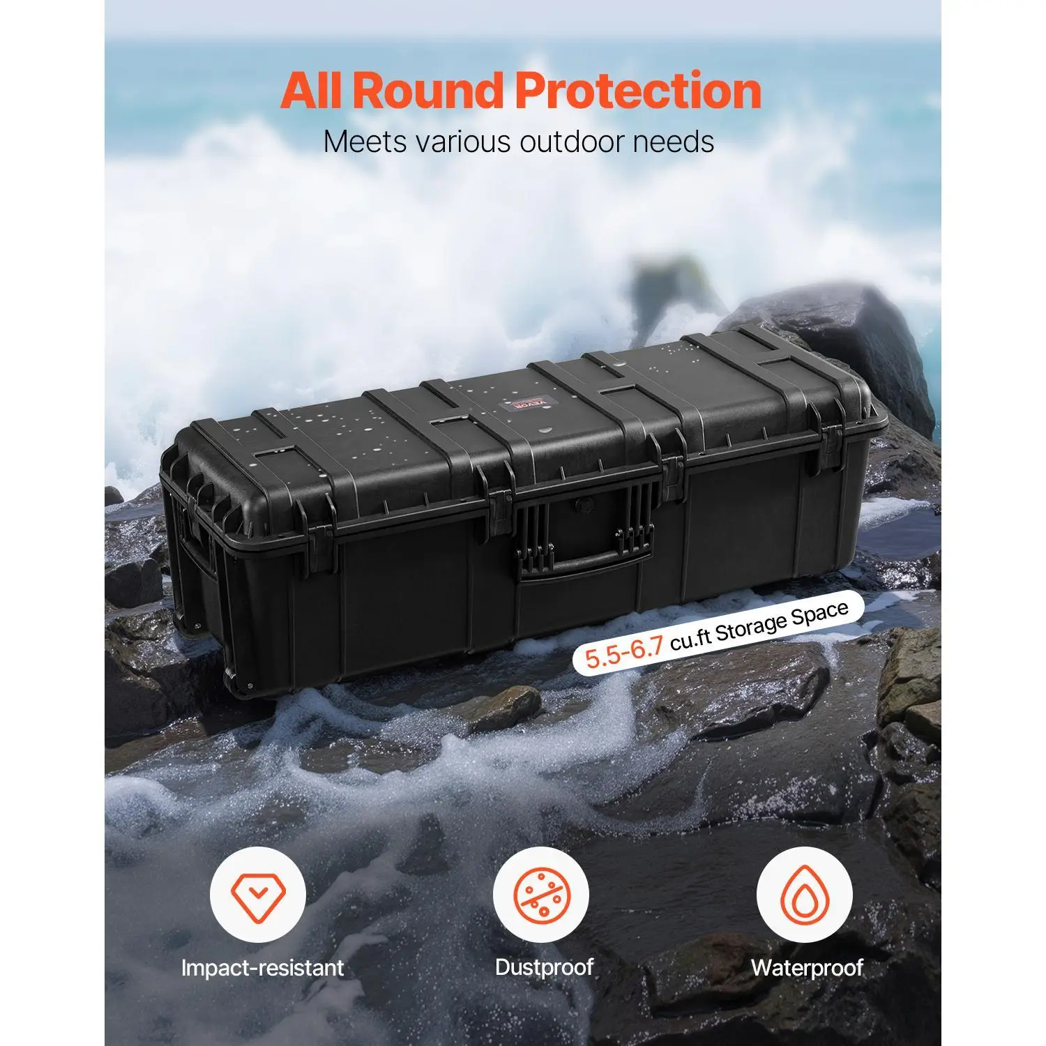 • All-around Protection: With 5.5-6.7 cu.ft of storage space and made from professional waterproof materials, this weatherproof hard case shields your gear from wind, rain, and impacts. Whether you're off on an outdoor adventure or just need reliable storage for daily use, this case keeps your valuables safe and sound.