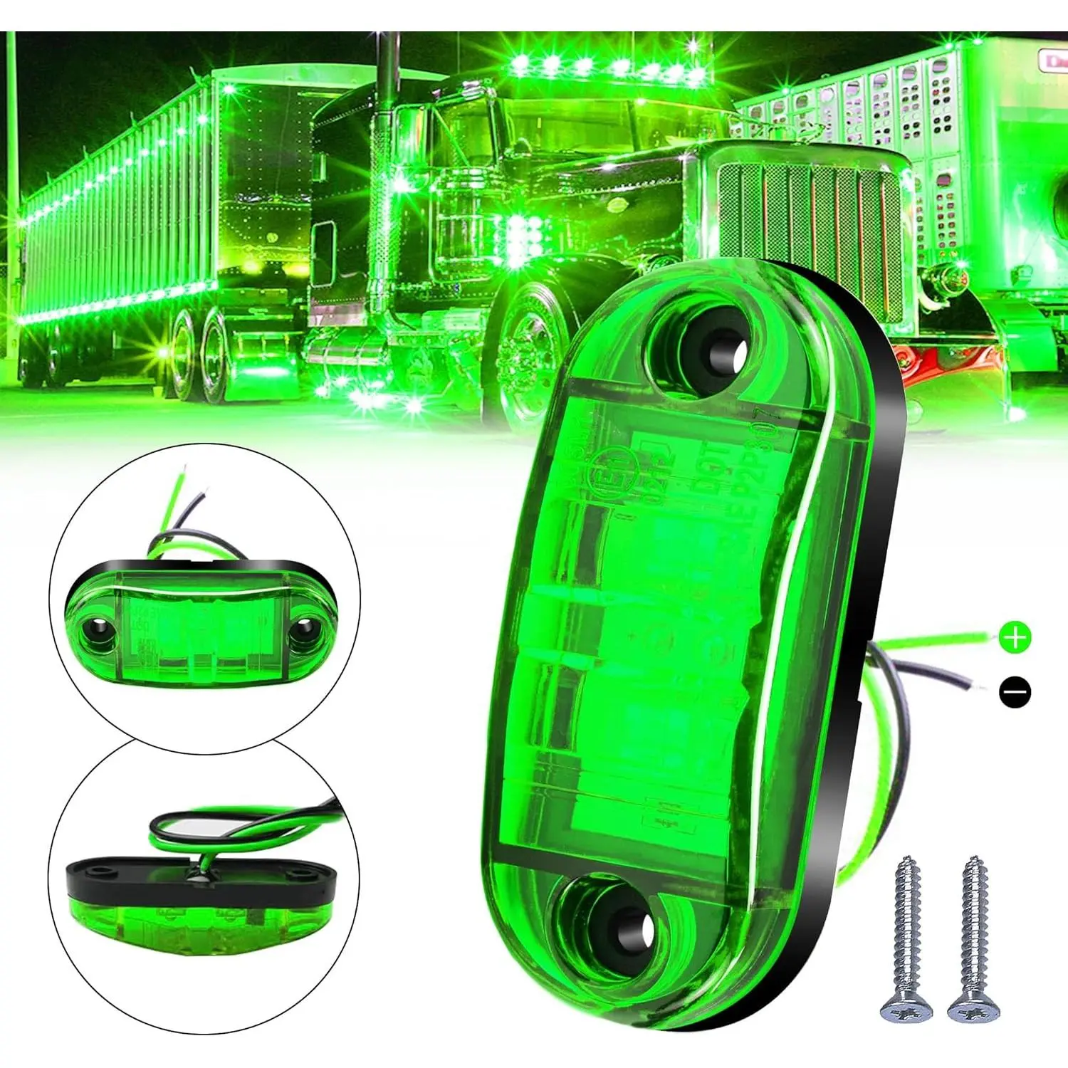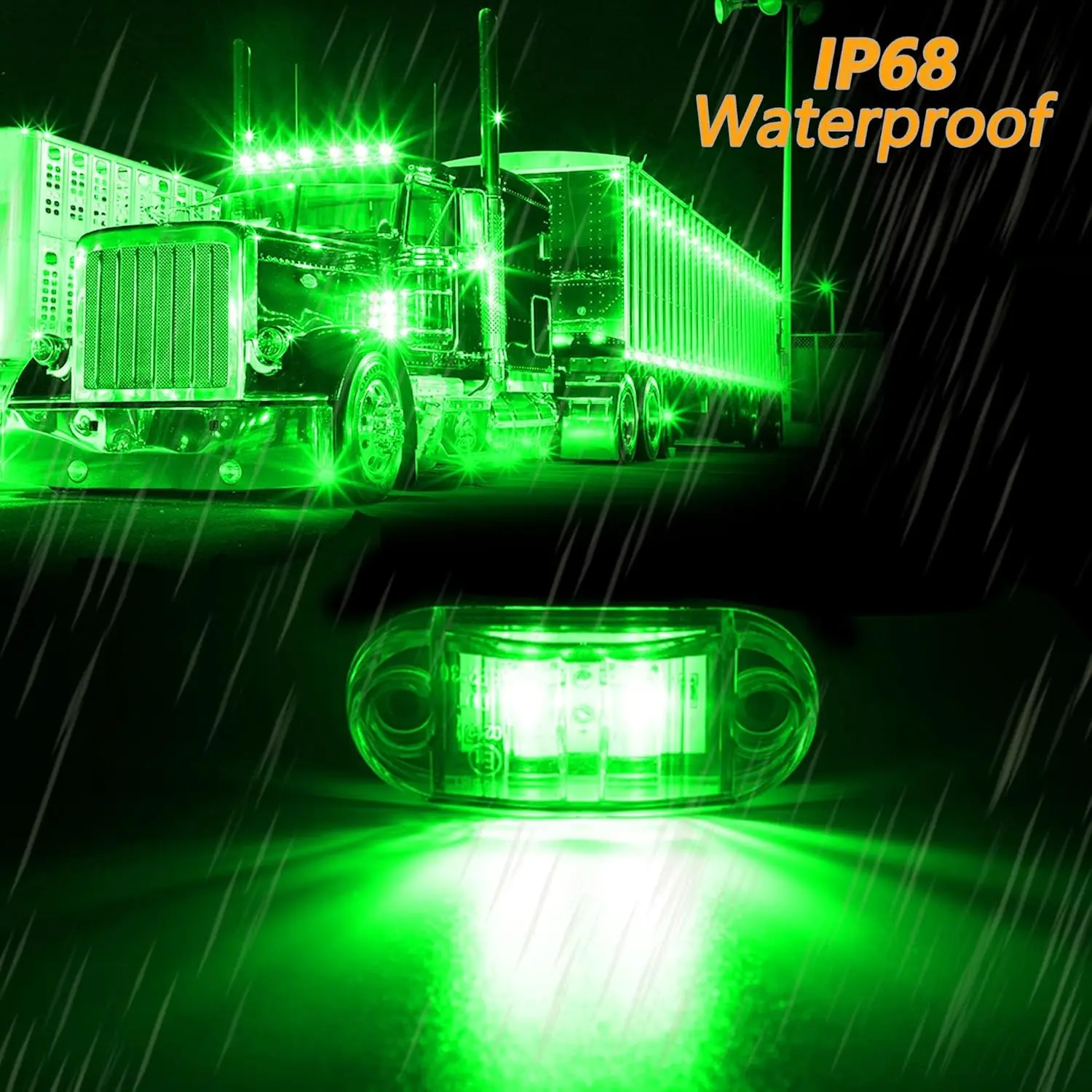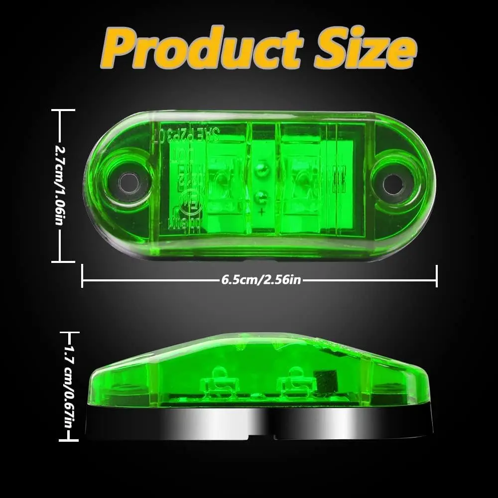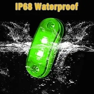 10 Pack Green DC12-24V IP68 Waterproof LED Trailer Lights Kit Front Rear LED Side Marker Clearance Indicators Light for RV Camper Truck Van Caravan Boat