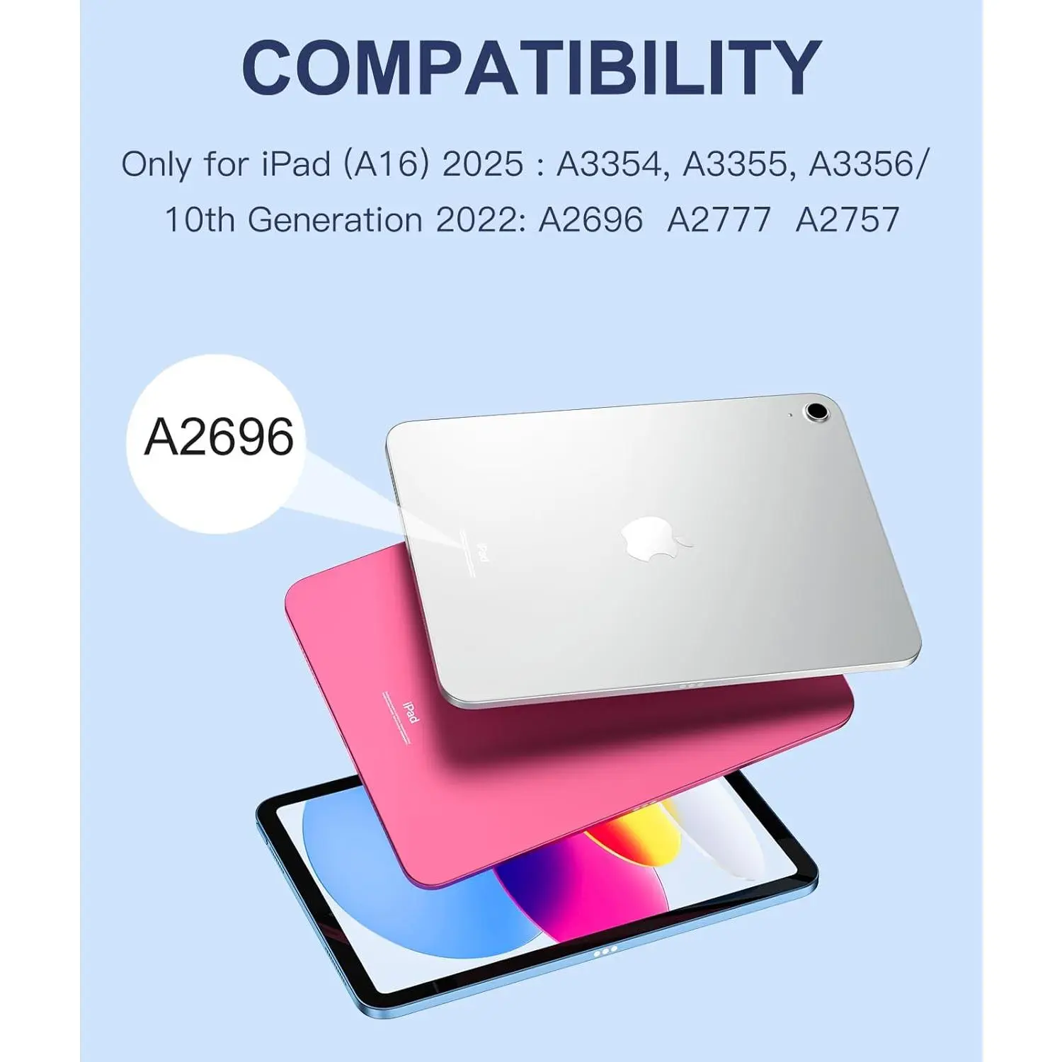 【Compatibility】For iPad (A16) 11th generation 11-inch 2025 (Model: A3354/A3355/A3356), For iPad 10th generation 10.9-inch 2022 (Model: A2696/A2757/A2777). Not for any other models. Please check the model number No. "AXXXX" the bottom of the of your tablet to confirm correct size before purchasing