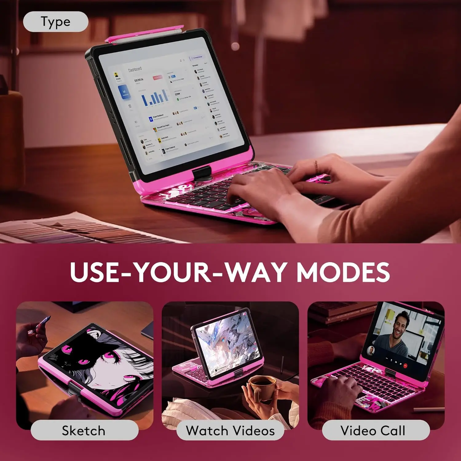 Ever wish your iPad case could keep up with your creativity and hustle? Meet the iPad Magic Case, designed for 10th & 11th Gen iPads and Air 4th/5th Gen models. With a precise 360° rotating multi-touch trackpad, it lets you switch between typing, sketching, or binge-watching with ease. The RGB backlit keyboard shines in 7 colors, featuring smooth scissor-switch keys for a satisfying typing experience day or night.