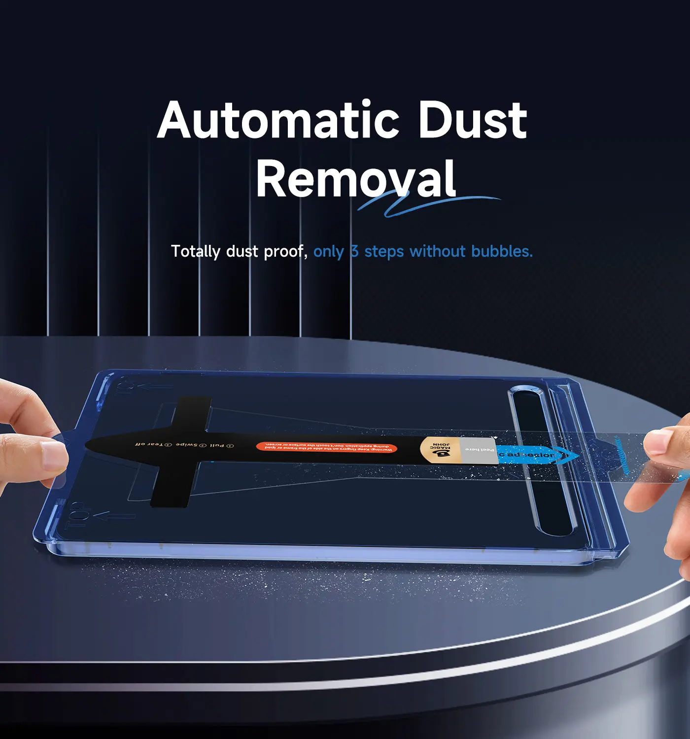 I was installing the item but when I was removing the dust removal strip, it literally ripped off, I had to manually remove the ripped plastic and of course I installed it back not perfect which it was the whole purpose of this purchase, for the screen protector to be installed perfectly