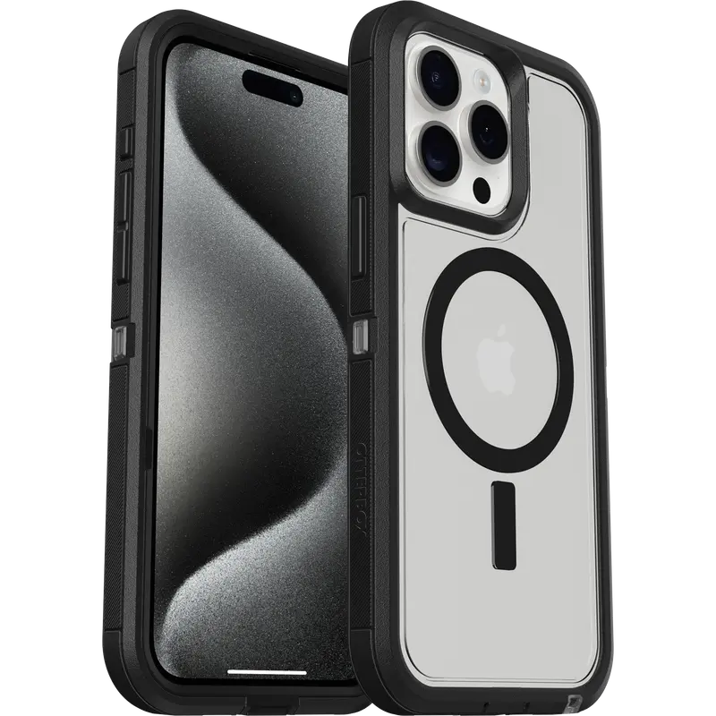 Looking for legendary protection? You've found it with the rugged Clear MagSafe iPhone 15 Pro Max case, Defender Series XT Clear. The premium rugged design displays clean lines with a comfortable grip that guards your iPhone against serious drops, dirt, scrapes and bumps. And, built-in magnets snap to MagSafe chargers and accessories.
