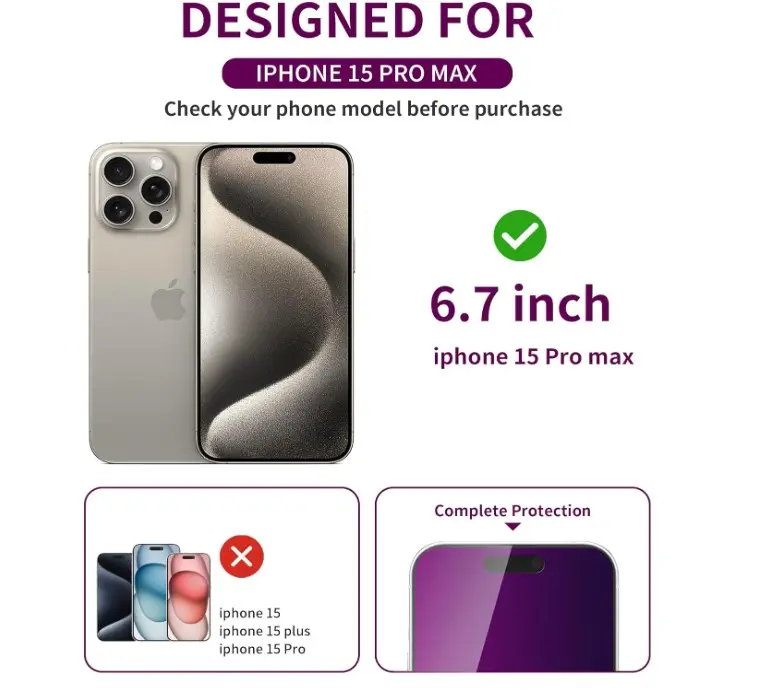 ·Full Coverage: The screen protector offers full coverage, ensuring that every part of your iPhone 15 Pro Max screen is protected. No blind spots. 📱