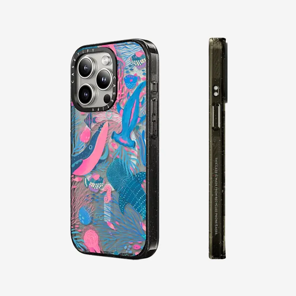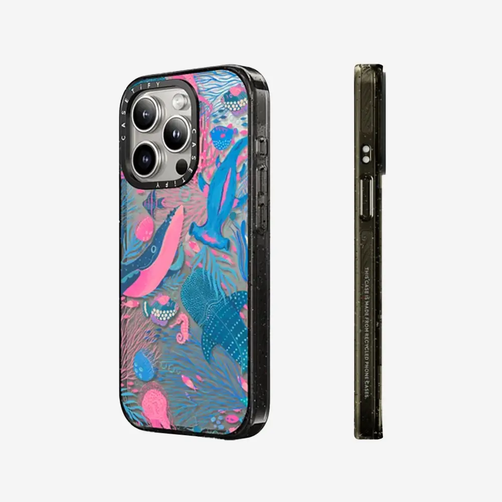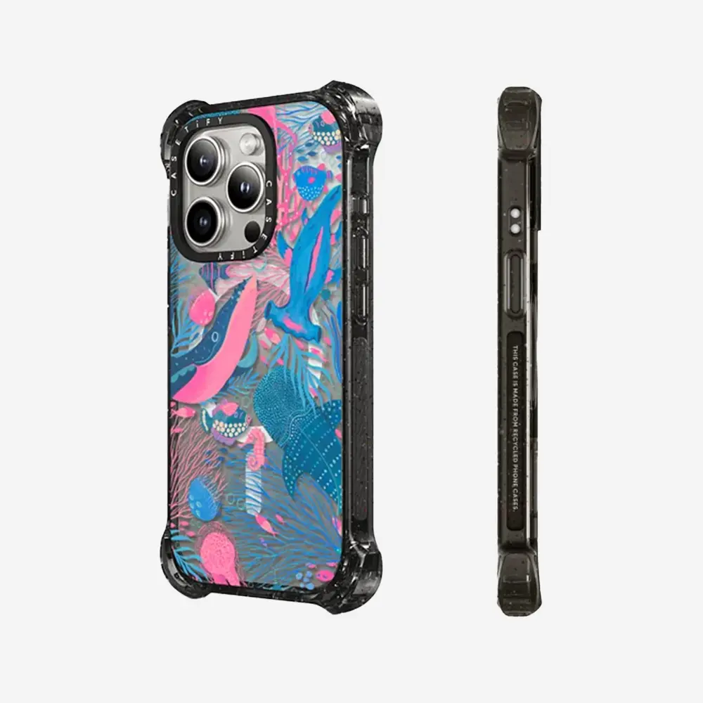 Ever dropped your phone and wished for superhero-level protection? Meet the CASETiFY Under the Sea phone case by Grace Andersson—your iPhone’s new best friend. Crafted with EcoShock™ material, it cushions your device from everyday drops, boasting 8.2 ft protection with the Impact Case or a whopping 21.3 ft with the Bounce Case. Both meet military-grade MIL-STD-810G standards, so your phone stays safe no matter what. The sleek black design features charming Under the Sea artwork and a handy charm attachment to personalize your look. Plus, it’s MagSafe compatible with side sockets, making wireless charging a breeze without removing the case. Included in the box is your chosen Impact or Bounce case ready to protect your iPhone 14, 15, or 16 series. Join CASETiFY’s eco mission by knowing your case is part of a recycling program that turns old cases into new materials. Ready to combine style, sustainability, and serious protection? Dive in and protect your phone with flair today!