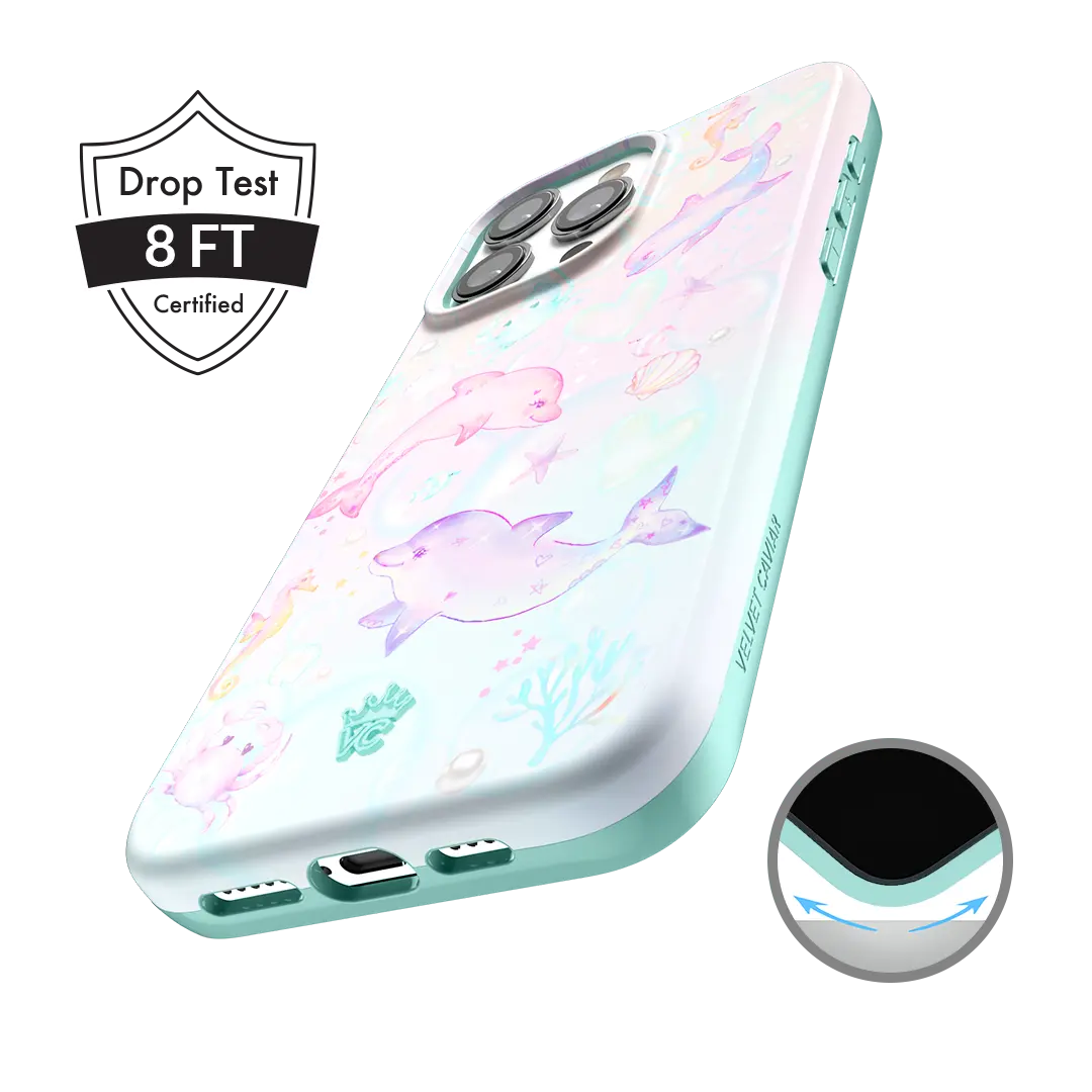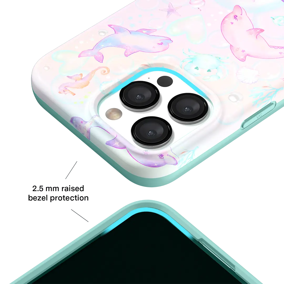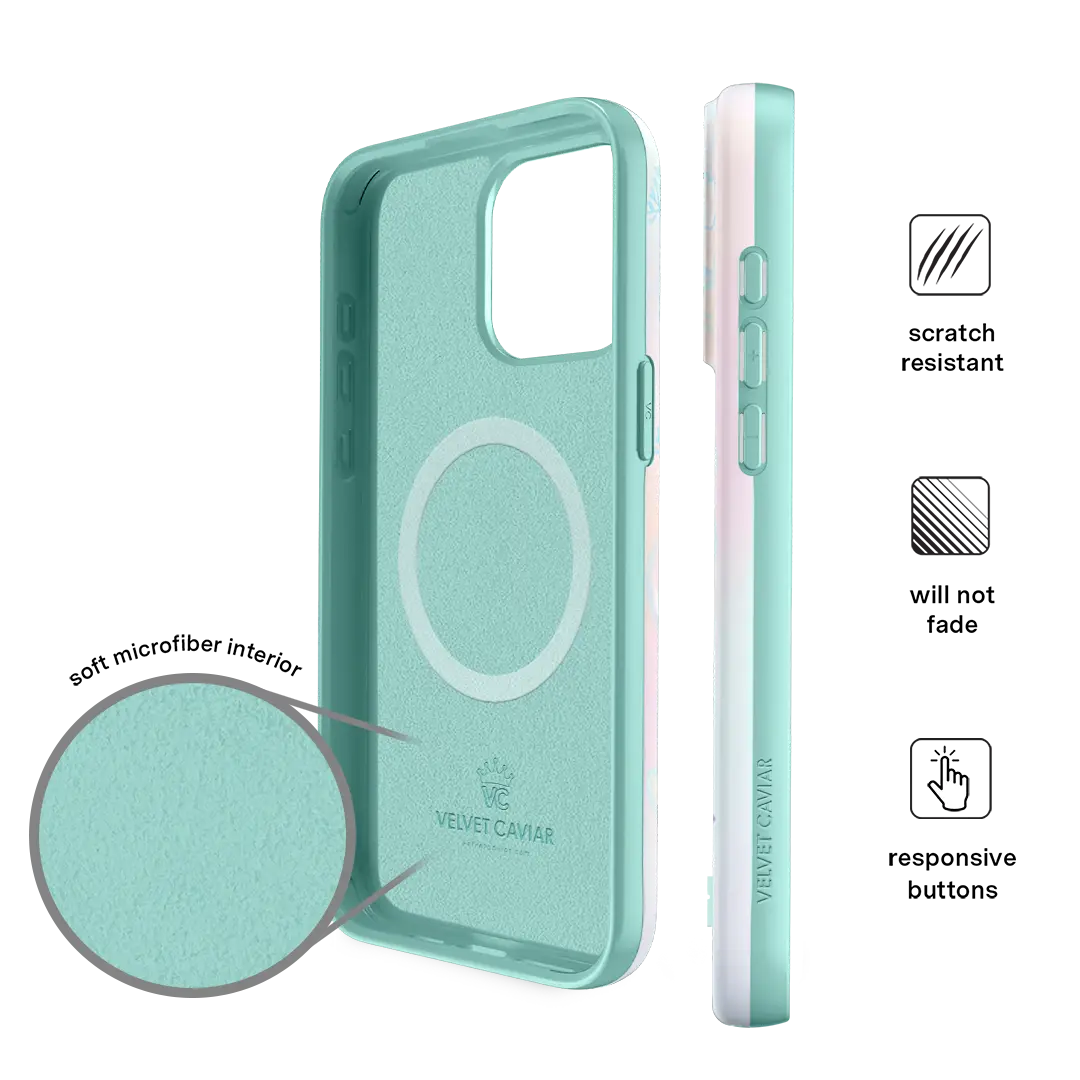 Ever wish your iPhone case could be both cute and tough? Meet the Velvet Caviar Aqua Angels case—a perfect blend of girly style and serious protection. Hand-drawn by NYC artists, this trendy case features a vivid Aqua Angels design that won’t fade or scratch off, thanks to premium laser printing. Beyond looks, it’s built to shield your phone with a soft TPU bumper and hard polycarbonate plate, plus raised bezels that guard your screen and camera. Drop test certified up to 8 feet, it’s ready for life’s little accidents. Inside, a soft microfiber lining keeps your phone scratch-free, while responsive button covers make using your device a breeze. It works seamlessly with magnetic grips and wallets for easy customization, though heads up—it’s not MagSafe compatible. Whether you’re snapping pics or scrolling through socials, this case keeps your iPhone safe and stylish. Included is the protective case itself, designed to fit a wide range of iPhone models. Ready to add a splash of NYC-inspired charm and reliable defense to your phone? Grab your Aqua Angels case today and show off your style while keeping your device protected!