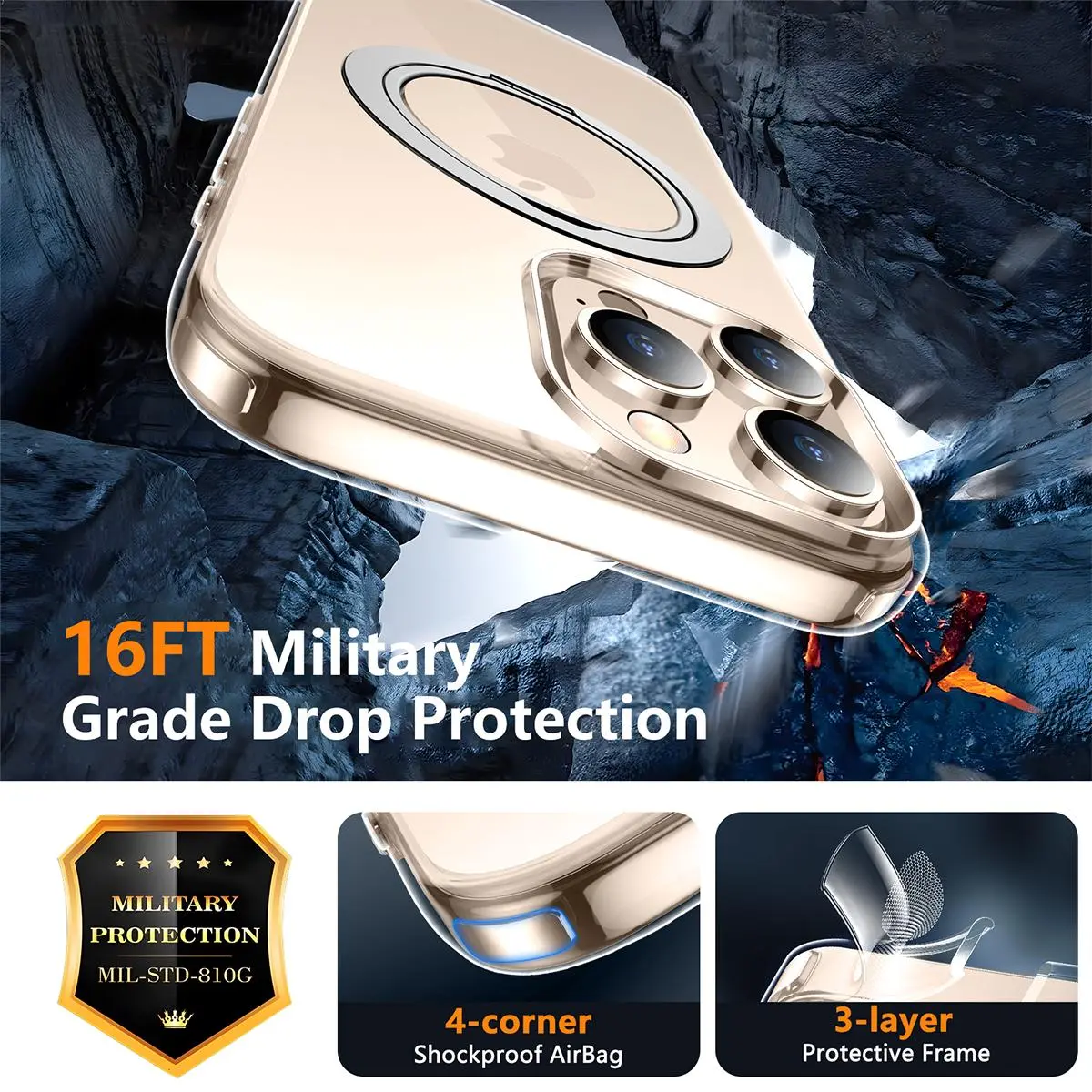 [360° Rotating Magnetic Stand Case] Discover unparalleled convenience with our innovative case. Say goodbye to bulky phone stands! Our 360° rotating stand offers versatile angles for all your needs—whether you're video chatting in portrait mode, browsing video, or watching movies in landscape mode.