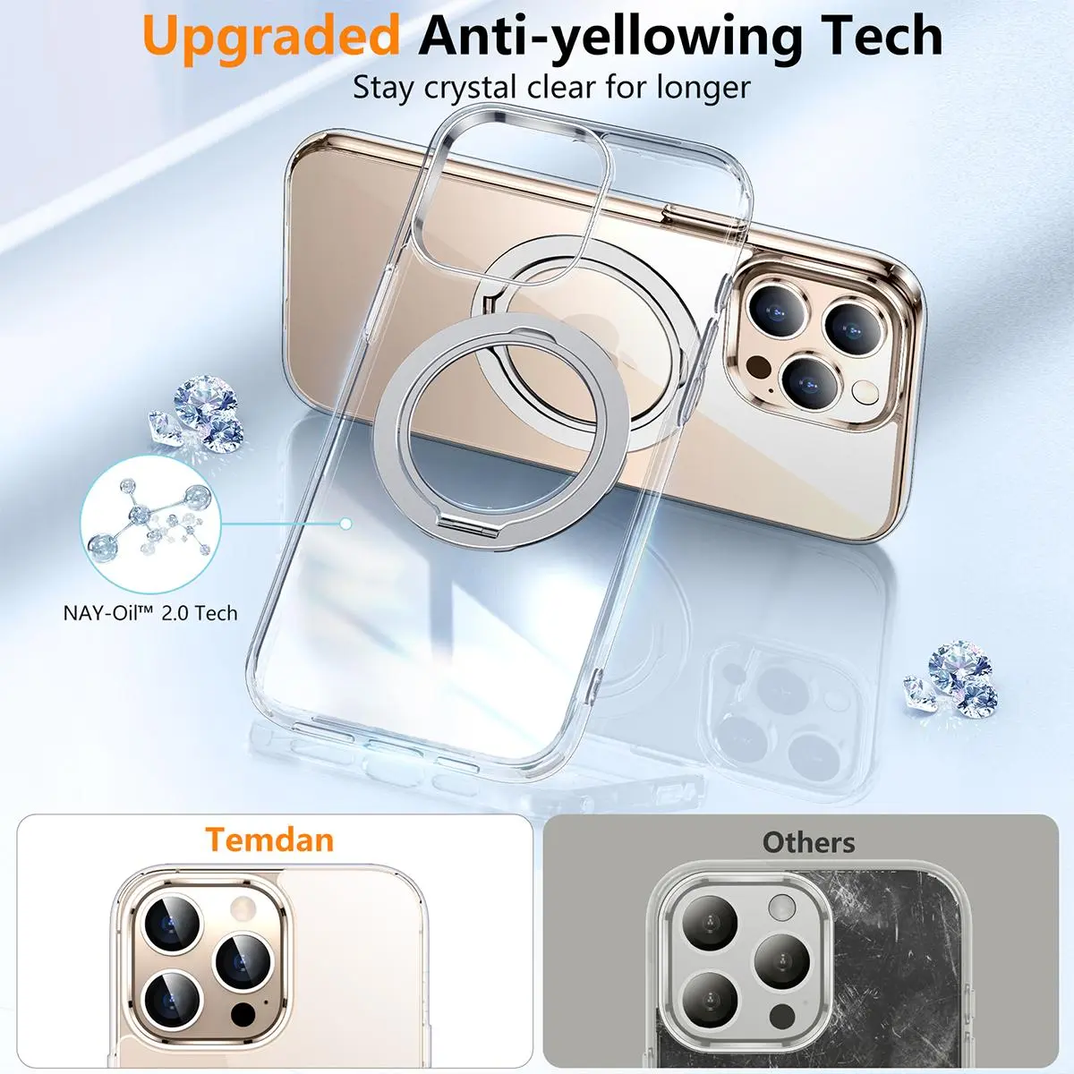 5. Temdan Designed for iPhone 16 Pro/16 Pro Max Case, 360°Rotatable Ring Stand Case Accessories Cover Protector Protection Protective Casing Cellphone