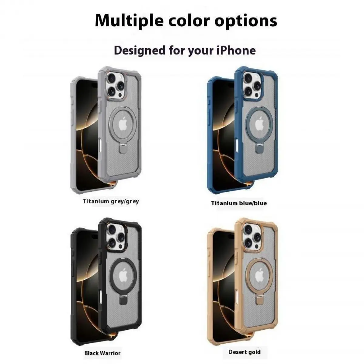 Ever worry about dropping your brand-new iPhone 16 Pro Max? This military-grade protective case has got you covered with shockproof TPU and a tough aluminum alloy bracket. It’s ultra-thin and skin-friendly, so your phone feels sleek and cool in your hand without bulk or heat buildup. The raised edges keep your screen and camera lens safe from scratches and bumps, while the invisible fulcrum doubles as a sturdy stand for hands-free viewing. Plus, the case is fully compatible with MagSafe charging and magnetic mounts, so you can power up or drive hands-free without removing the case. The frosted translucent back panel with diamond texture and customizable orange accents add a touch of style, available in four cool colors. Inside the box, you get the protective case ready to snap on your 6.9-inch iPhone 16 Pro Max and enjoy peace of mind with military-grade defense. Ready to keep your phone safe and stylish? Grab this case and protect your investment with flair!