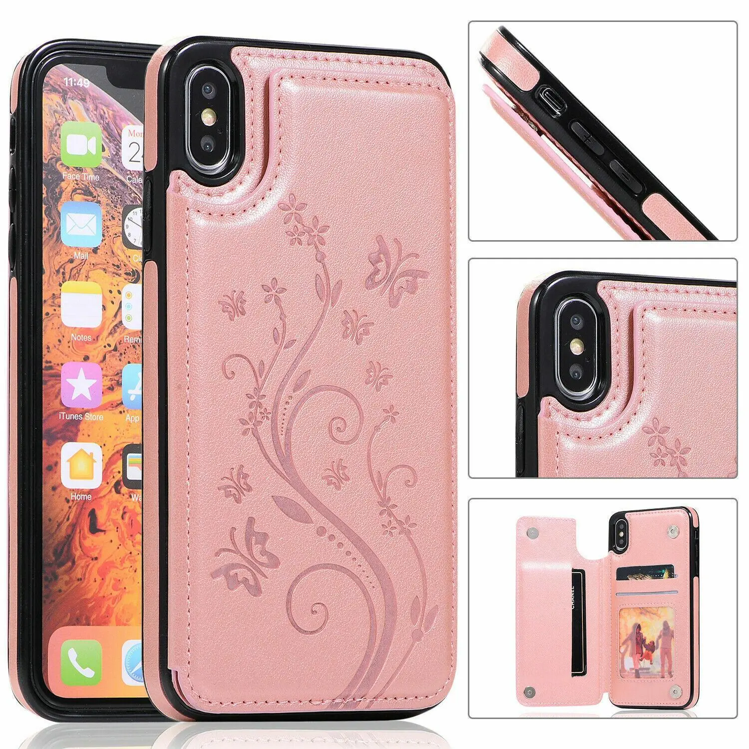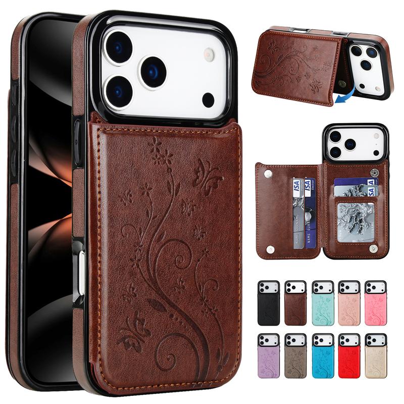 Ever fumble with your phone and cards separately? This premium PU leather wallet case with an embossed butterfly design keeps your essentials together in style. Designed for iPhone 16, 15, 14, 13, 12, and 11 Pro Max models, it offers a soft TPU back and shockproof protection to guard against everyday drops and bumps. The double magnetic buttons secure your cards and cash, so nothing slips out, while the built-in card slots keep your credit and ID cards handy. Plus, the handy stand function lets you kick back and enjoy videos or video chats hands-free. The precise cutouts mean you can charge your phone and use speakers without ever removing the case. Please note, the package includes one case only; a screen protector is not included, so consider adding one for full protection. Ready to upgrade your phone protection with a touch of elegance? Grab this wallet case and carry your essentials effortlessly!