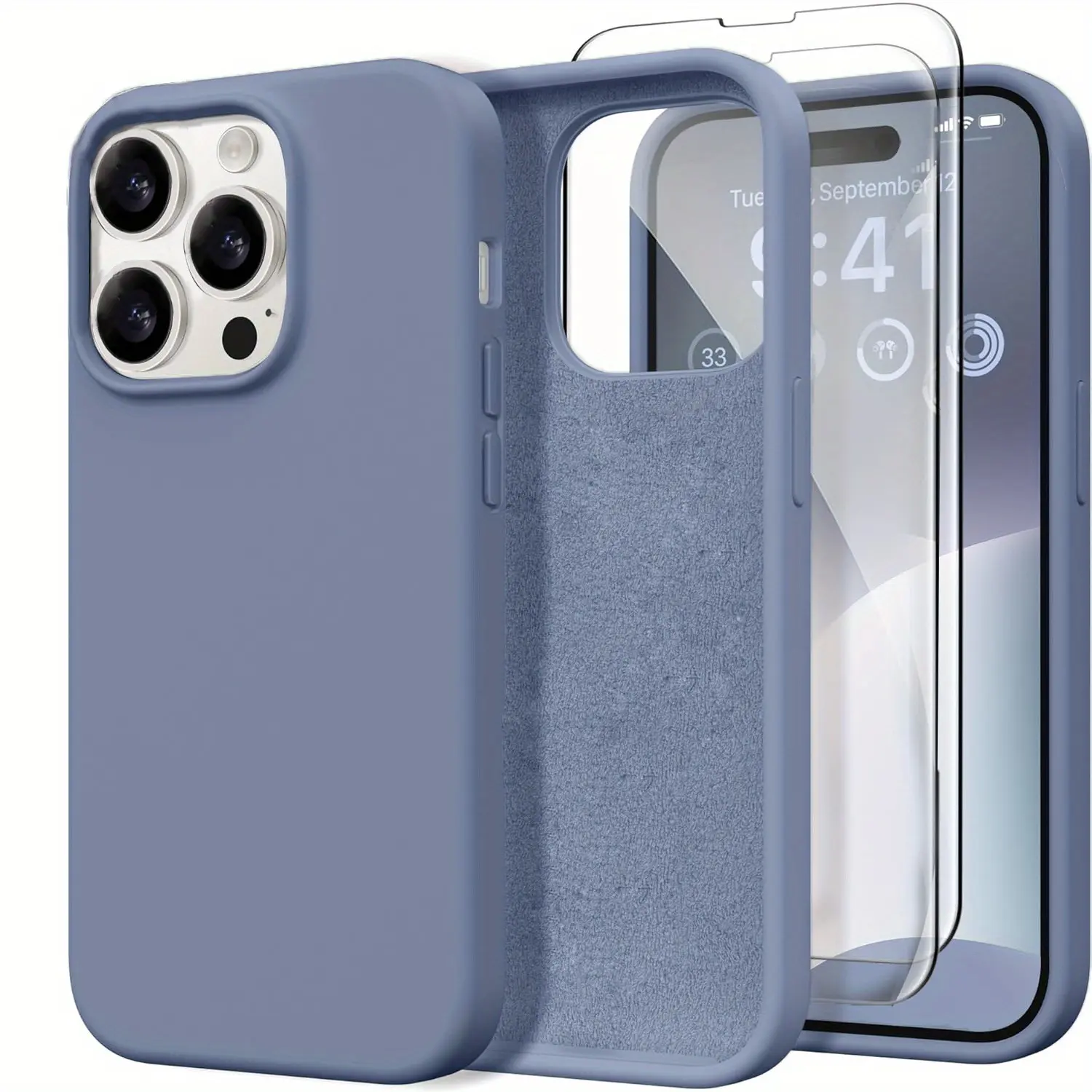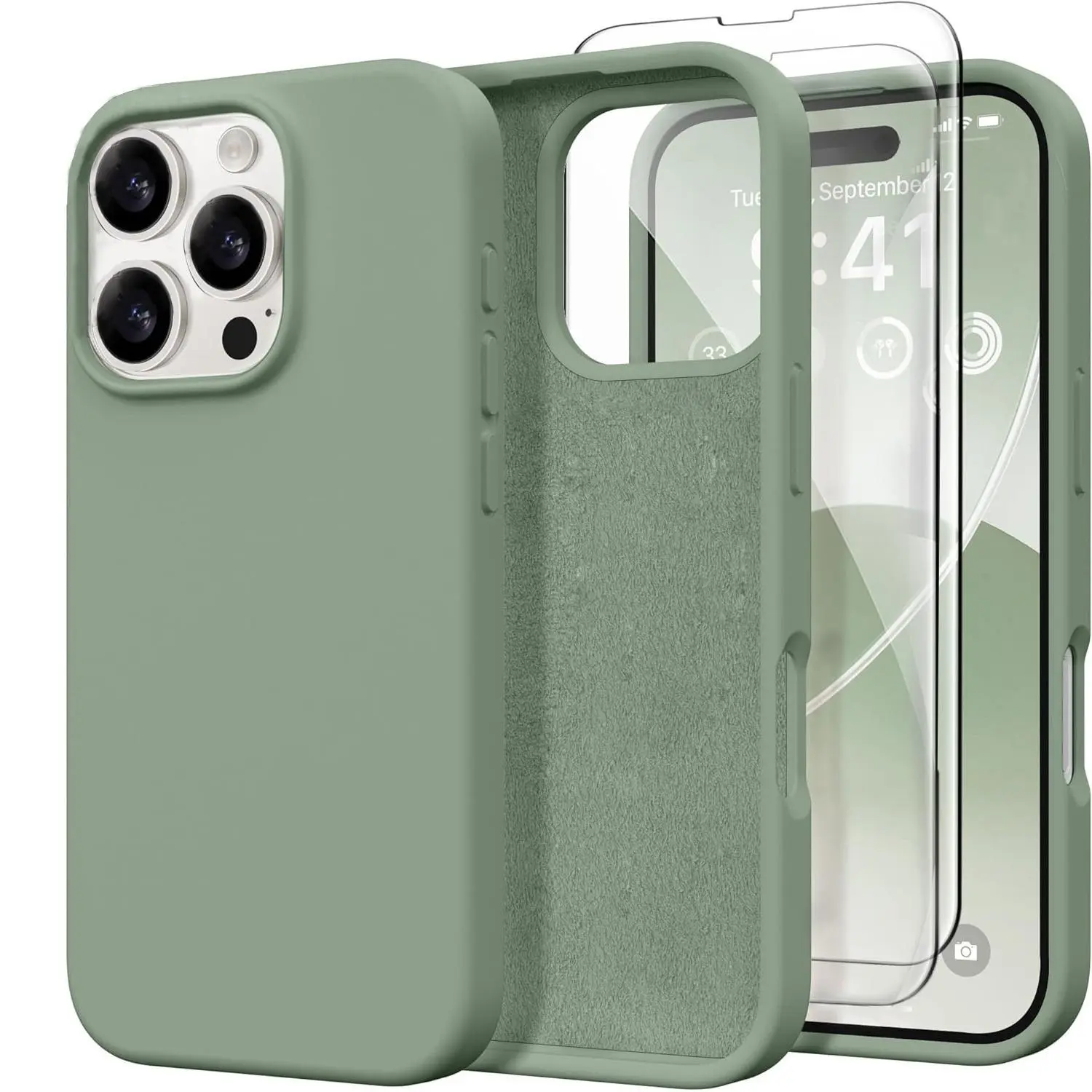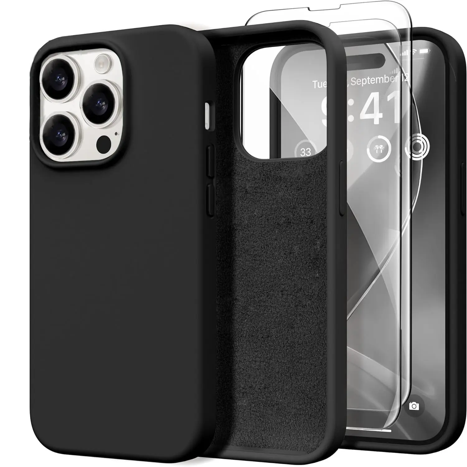 3 in 1 Compatible with iPhone 16e 16 Pro Max Case Liquid Silicone Cases with 2 Screen Protectors, Full Body Protection, Soft Microfiber Lining, Slim Shockproof Protective Phone Case for iPhone 17/16/15/14/13/12/11 Pro