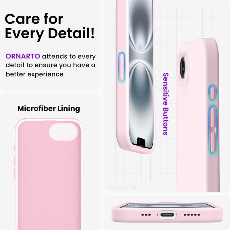 Ever drop your phone and cringe? The ORNARTO case for iPhone 16e is here to save the day with its real liquid silicone build that fights dust and fingerprints like a champ. Inside, a soft microfiber lining keeps your phone scratch-free, while the raised edges guard your screen and camera from bumps. Despite its slim profile, this case packs three layers of soft gel rubber that absorb shocks from accidental drops, so your phone stays safe without the bulk. Plus, it supports wireless charging, so no need to take it off every time you power up. With a rainbow of chic colors from Mint Green to Midnight Blue, you can match your case to your style or mood. Each box includes one ORNARTO liquid silicone case designed exclusively for the iPhone 16e 6.1" (2025). Ready to protect your phone in style? Grab your favorite color and enjoy peace of mind with every drop!