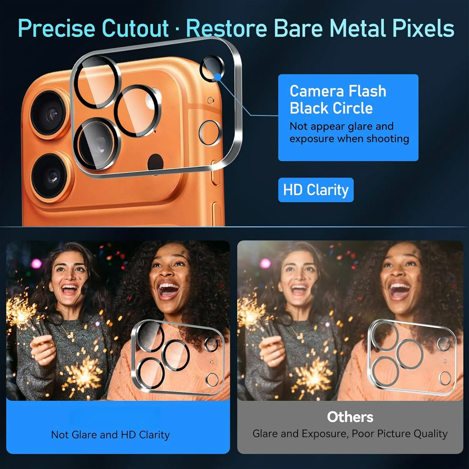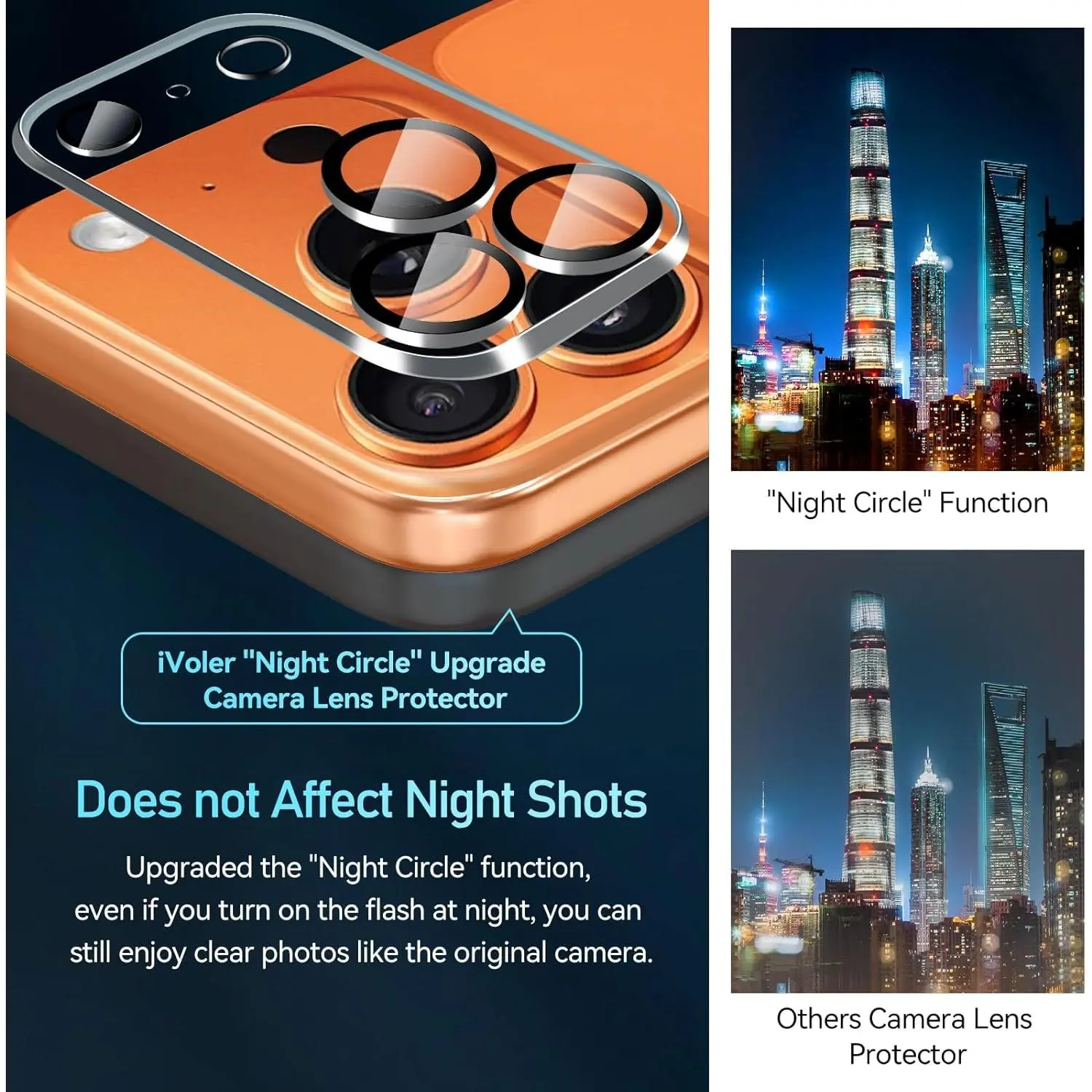 [Innovative Design]The 9H tempered glass protector hole is embedded with night anti-glare coating.Protect your camera and keep the original picture quality.