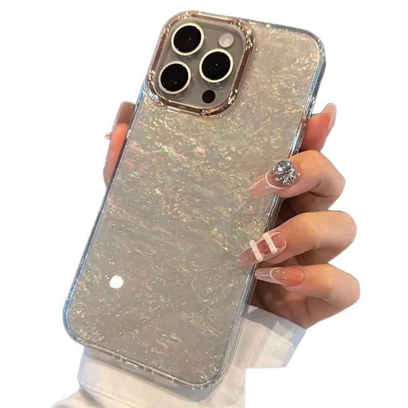 Phone Case: Glitter Shell Pattern Compatible with iPhone 17 Pro Max Case Starry Sky Apple 16/15/14/13 Goddess Protective Cover Shockproof