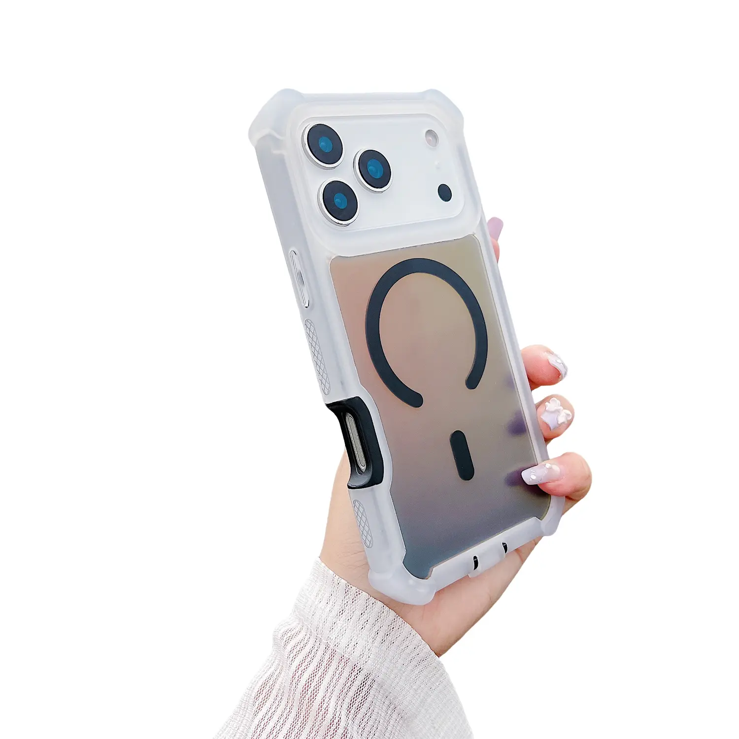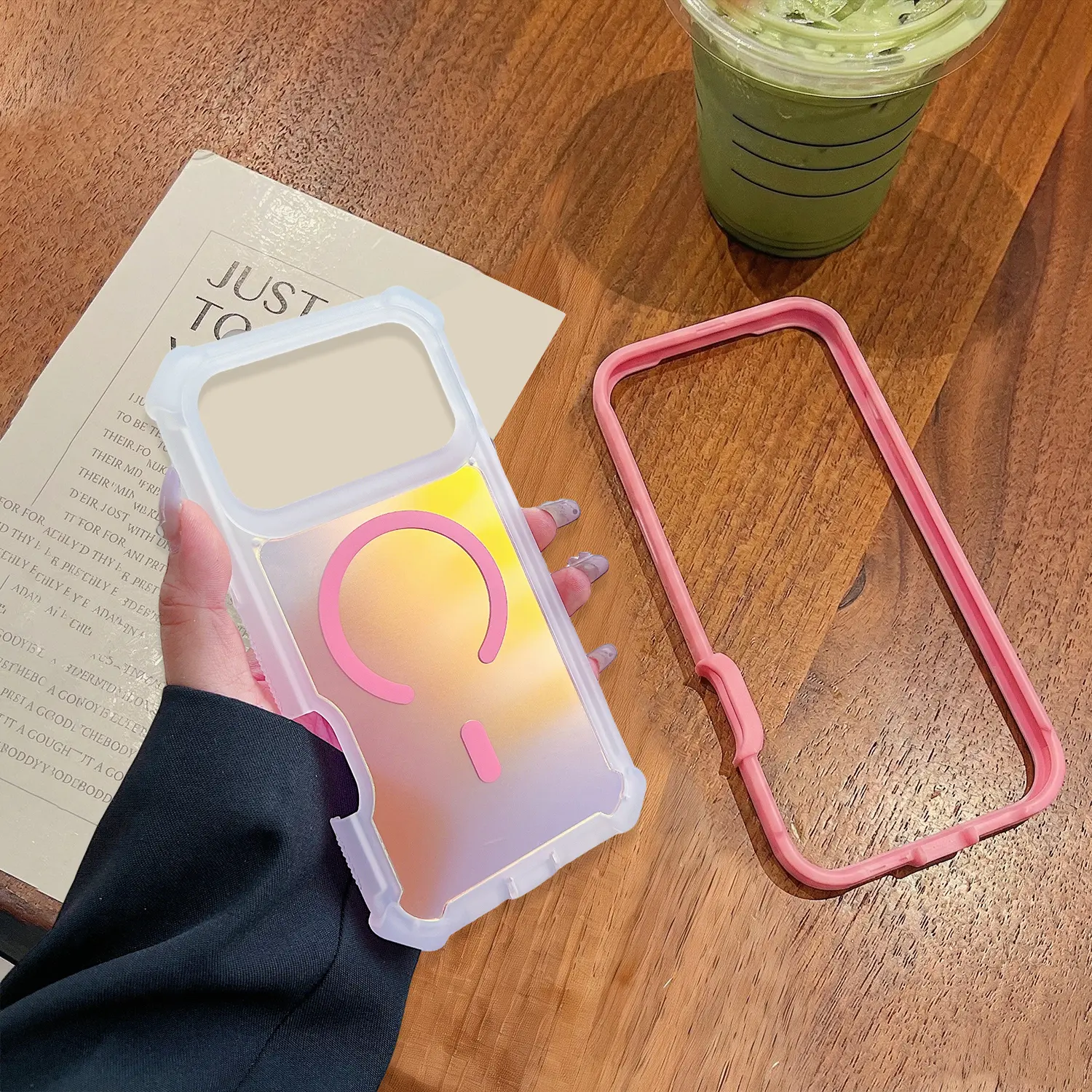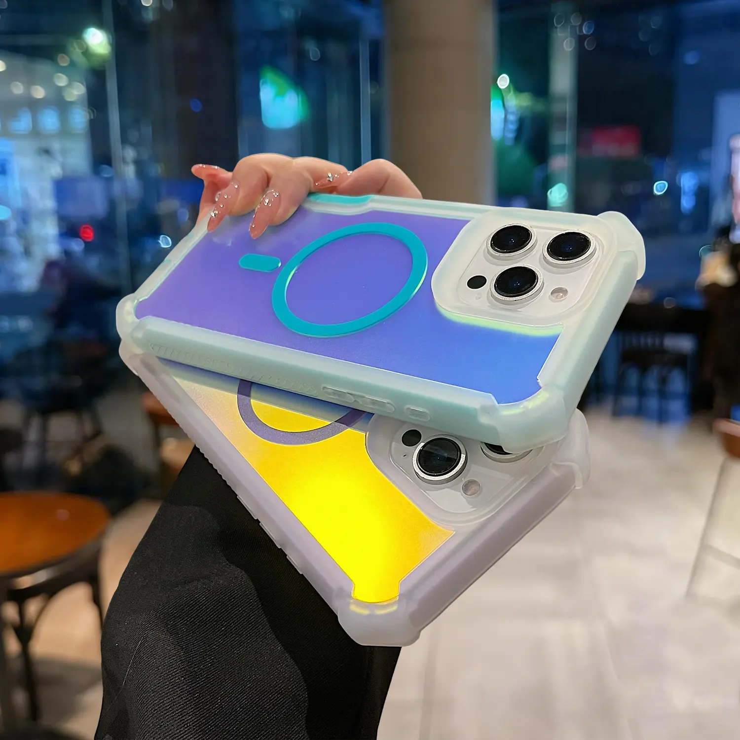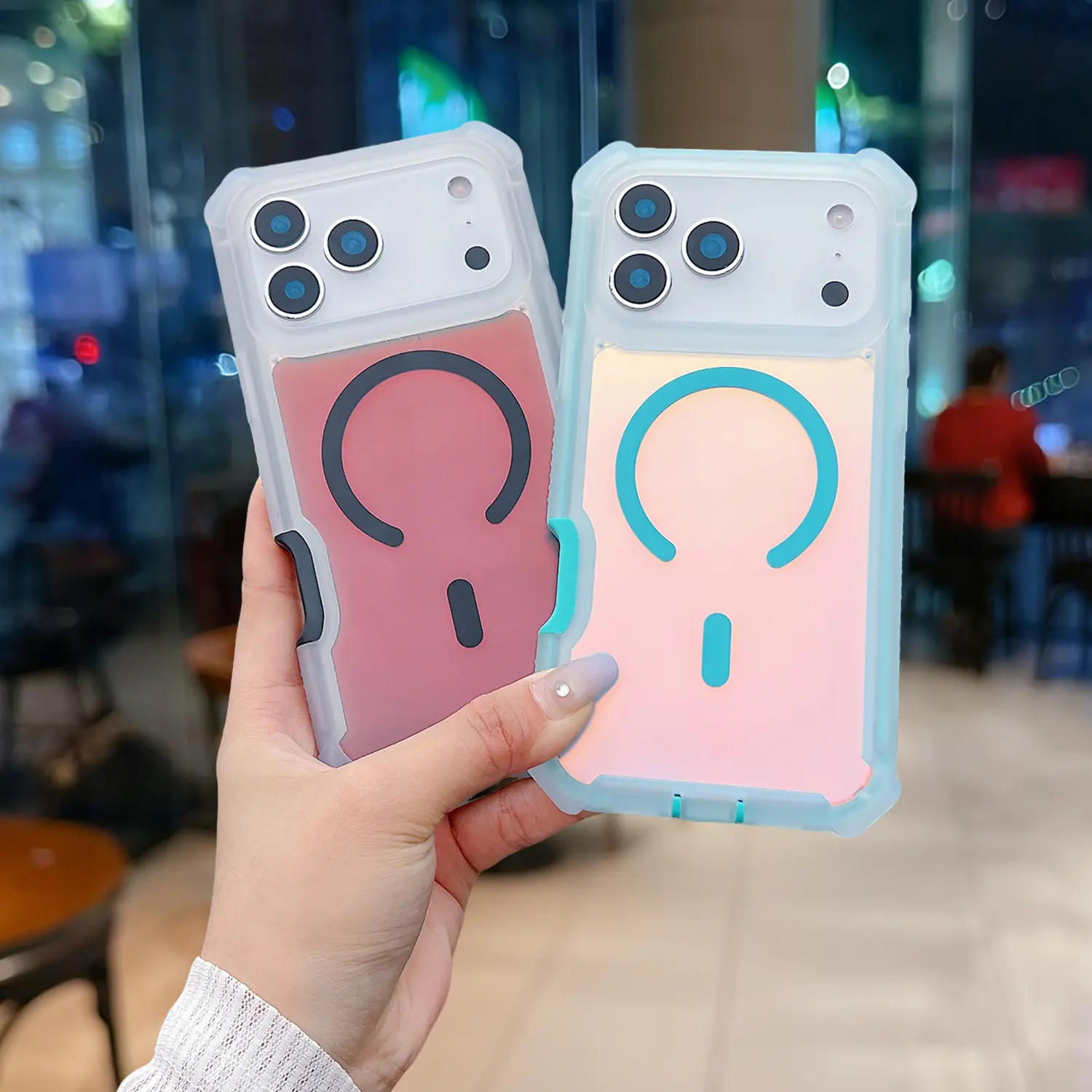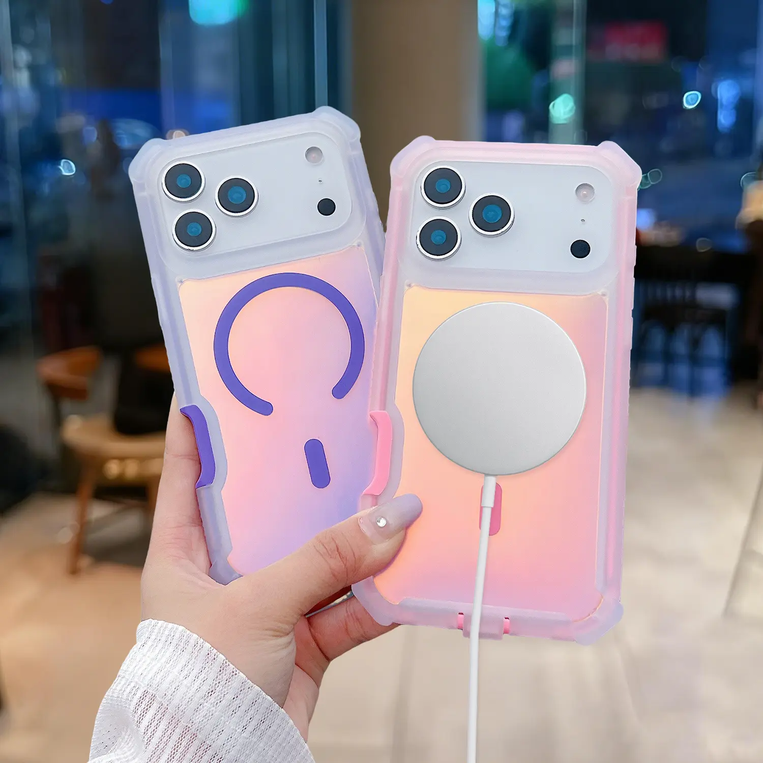 For iPhone 17 Pro Max Case/17 Air/17 Pro/17 16 15 14 13 , Iridescent Back, Magnetic Support for MagSafe Shockproof Cover, Crystal and Corner High-Duty Protection for Girls Women