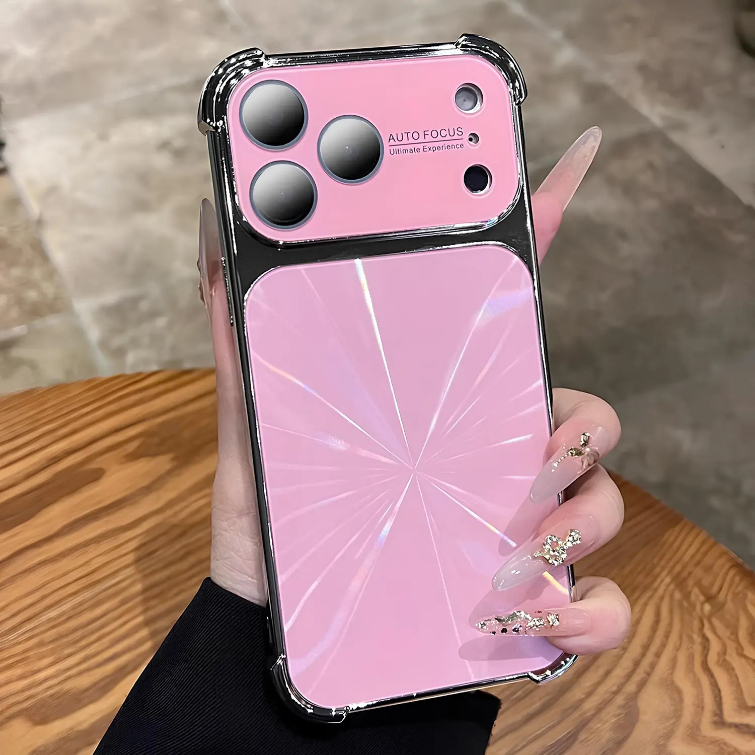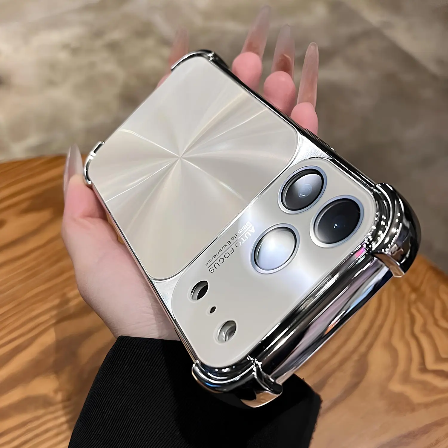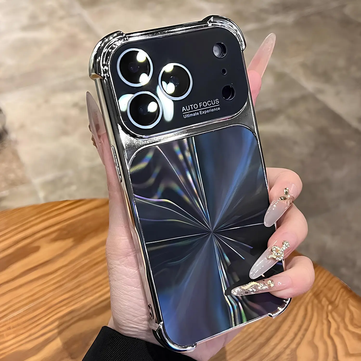 Quad-Corner Drop-Proof CD-Texture Case for iPhone, CD-Pattern Electroplated Four-Corner Shockproof Case with Lens Protector.