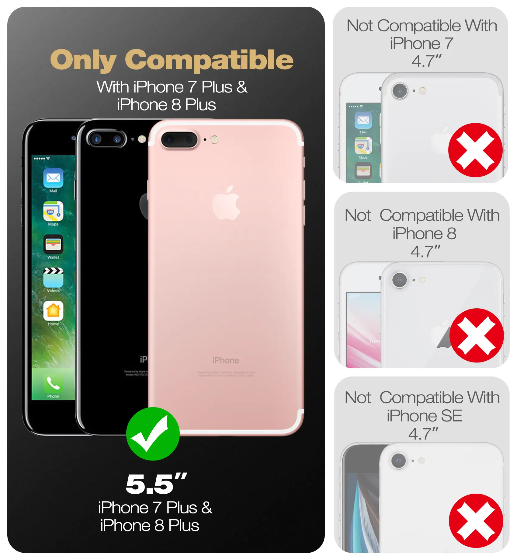 ·【Compatibility & Professional Support】Only compatible for iPhone 7/8 Plus 5.5 inch. Our case supports Wireless Charging. Please feel free to contact us via the Amazon Message Center for any issues, and we will respond to you 24 hour.