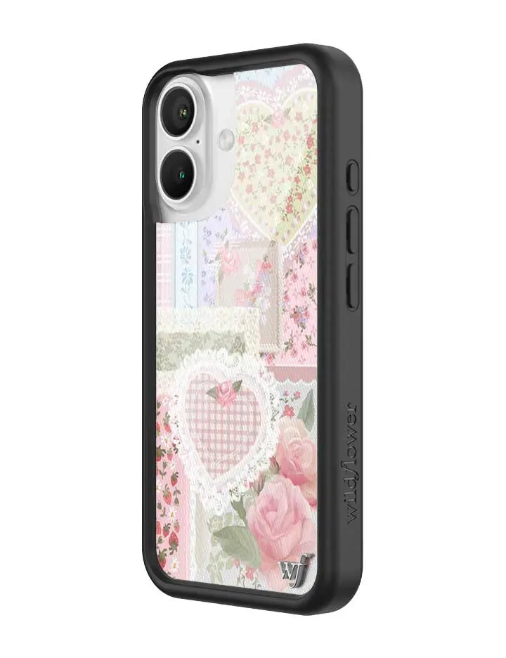 Looking to add a flirty, vintage touch to your iPhone? The Frilly Floral case is perfect for anyone who loves that delicate shabby chic aesthetic from the early '90s. With dainty lace, florals, and frills, this limited edition case brings a coquette vibe to your everyday style. Made with a durable sandblasted polyurethane outer shell and a black rubber bumper, it offers reliable protection against drops and scratches. The raised bumper around the screen adds an extra safeguard to keep your phone looking pristine. Each case is handmade, so no two are exactly alike—making your phone truly unique. Plus, the subtle silver "wf" emblem adds a classy signature detail. Whether you’re dressing up your phone for work, school, or weekend fun, this case is a charming way to protect your device while showing off your personality. Available for a wide range of iPhone models from 11 to 16 Pro Max. Ready to flaunt your vintage flair? Grab your Frilly Floral case and let your phone bloom with style!