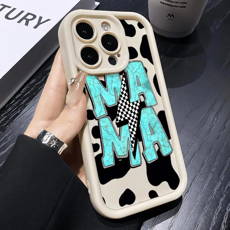 Phone Cases Suitable for IPhone17,16, 15, 14, 13, 12, 11,pro Promax Plus Air Cow Skin Mama Pattern Pocket-Friendly Shockproof Silicone Protective Cellphone Softcase Gift For Girls and Women