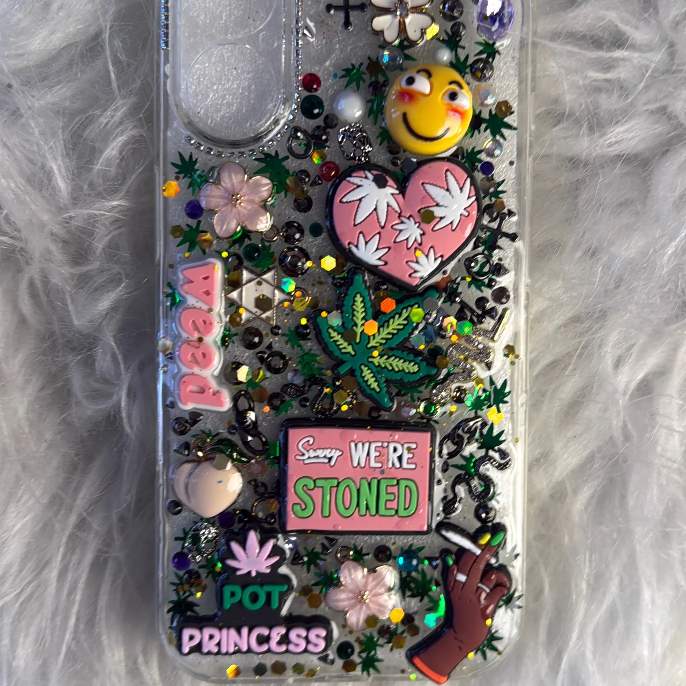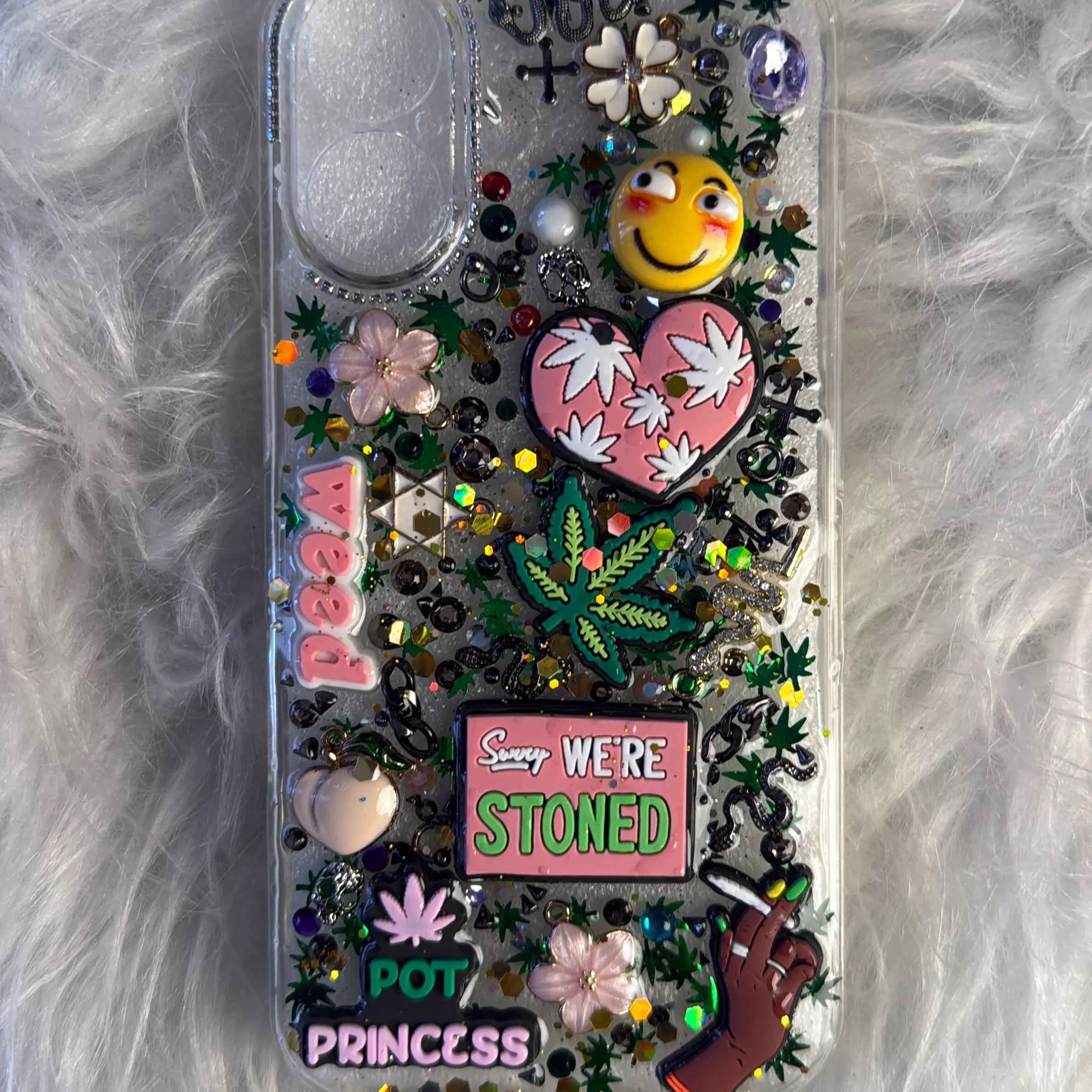 Blown away, I love ur balance with the pink and gold accents on the case along with your great use of space, first junk case and I’m obsessed will def order from u again for the next vibe (love the sparkles and ‘flowers’)
