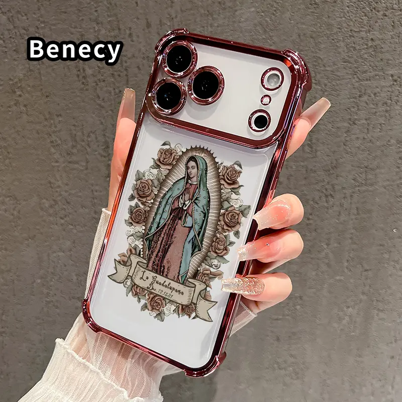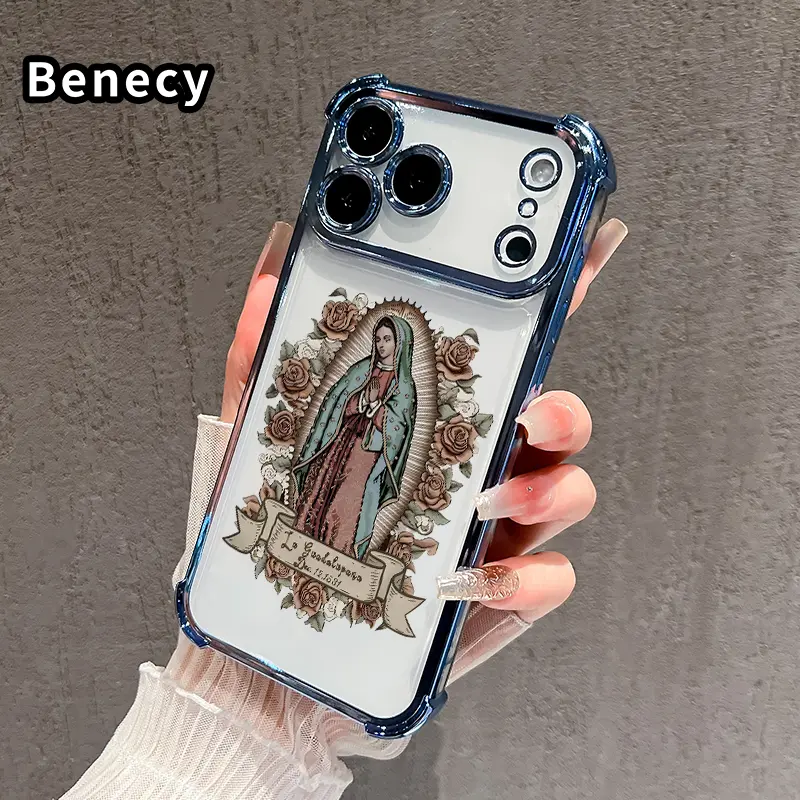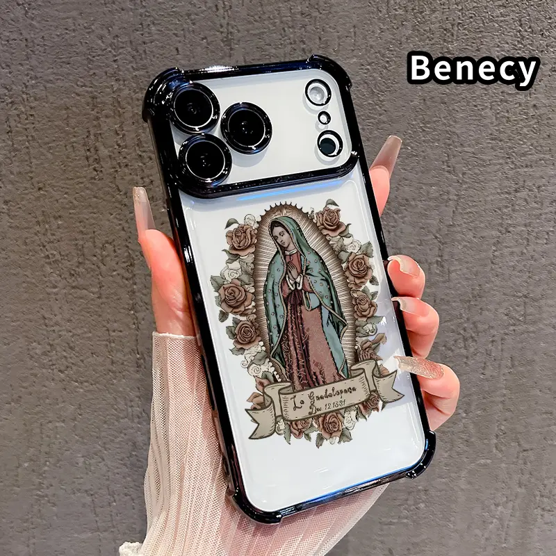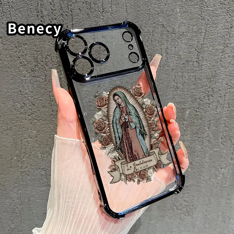 Protective Four Corners Plated Clear Phone case for iPhone 17 Pro Max 16 15 Plus Air 14 13 12 11 E Guardian Angel Patterned Shockproof Transparent Soft Silicone Cover