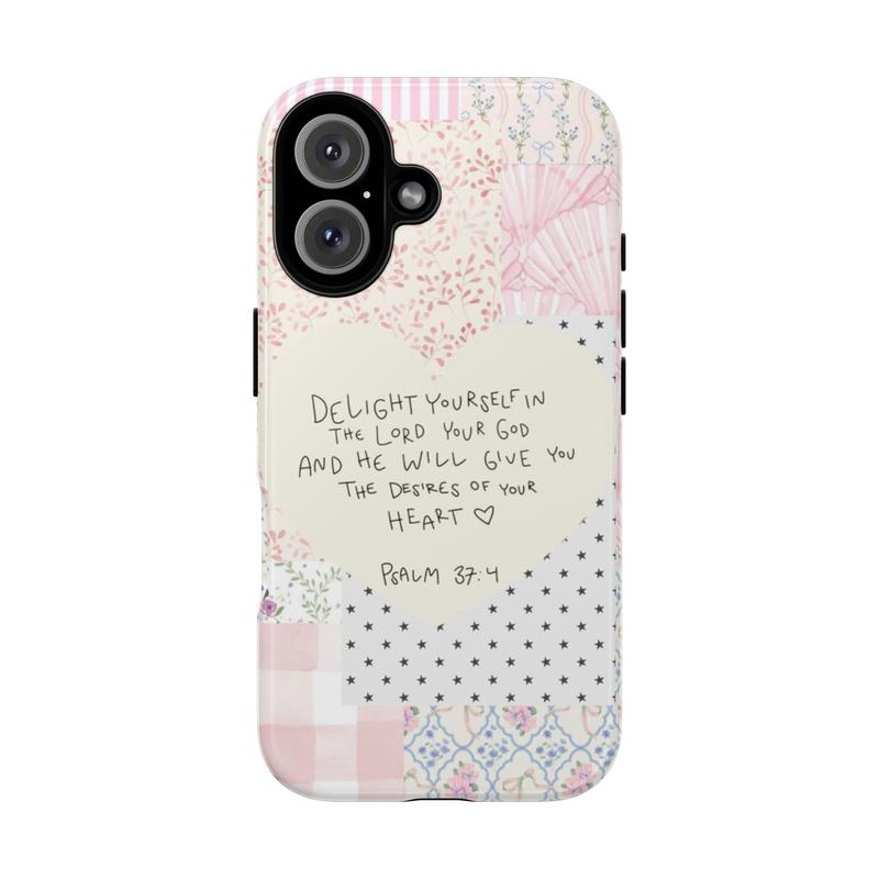 Psalm 37:4 Bible Verse iPhone Case, Christian Floral Patchwork Phone Cover, Gift, Collage, Aesthetic, Delight yourself in the lord your god