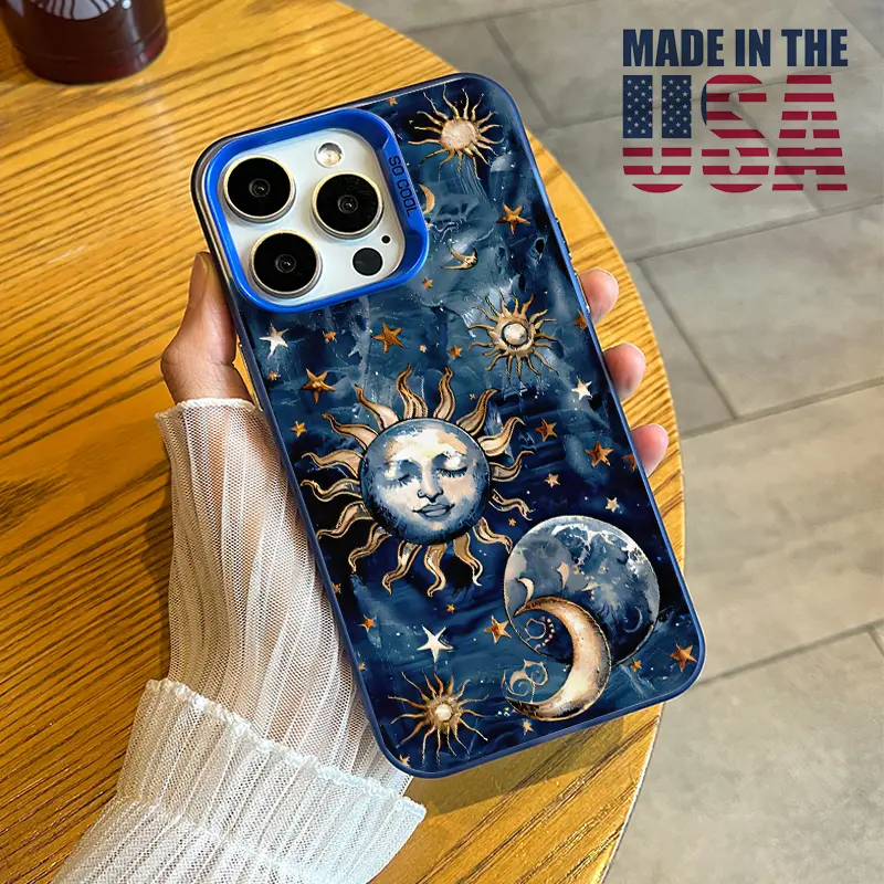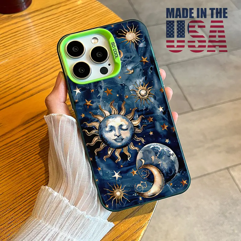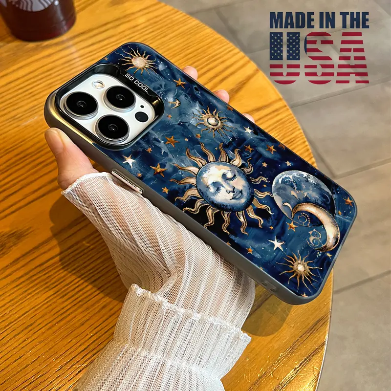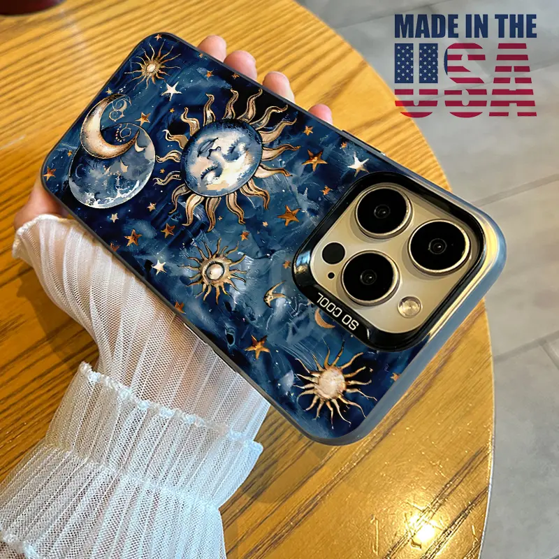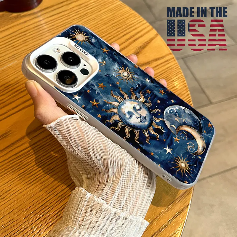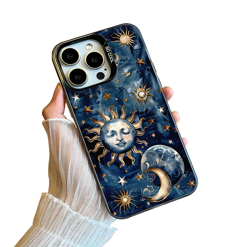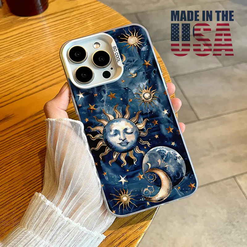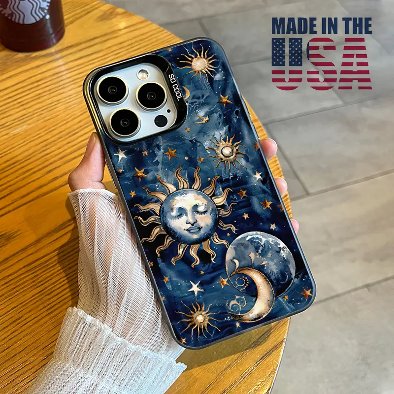 Phone Case Compatible with iPhone 16 15 Pro Max Plus 16E 14 13 12 11 X XR Starry Sun Moon Pattern Durable Shockproof Anti-Scratch PC Protective Case