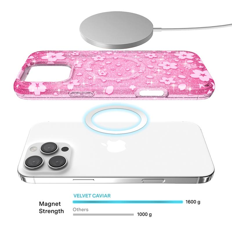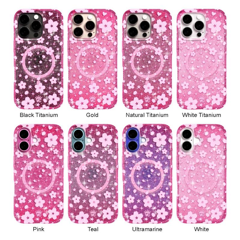 Spring has officially sprung with this Cherry Blossom Glitter iPhone Case! Imagine your phone wrapped in delicate pink sakura flowers dancing over an ombre clear pink base, all sprinkled with shimmering silver stardust glitter. It’s like carrying a little piece of cherry blossom season wherever you go—without the pollen.