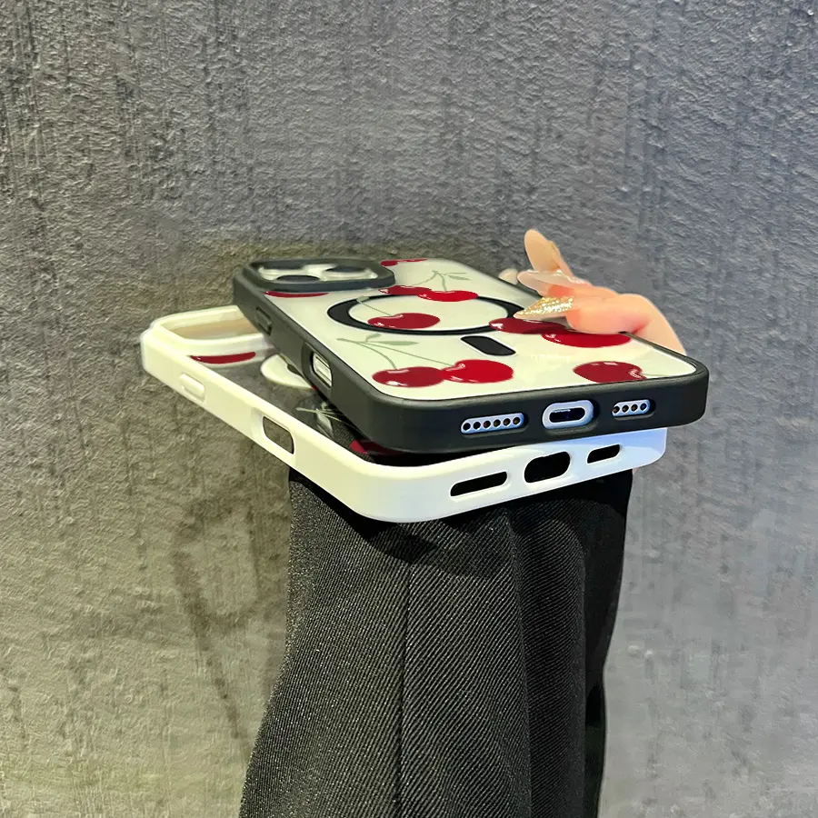 Phone case for iPhone 16 Pro Max 15 Plus 14 13 12 11 XS Max XR X Cherry Pattern Non-Yellowing Transparent Anti-Scratch Shockproof Pocket-Friendly Durable MagSafe Case with Charging Cellphone Cover Gift