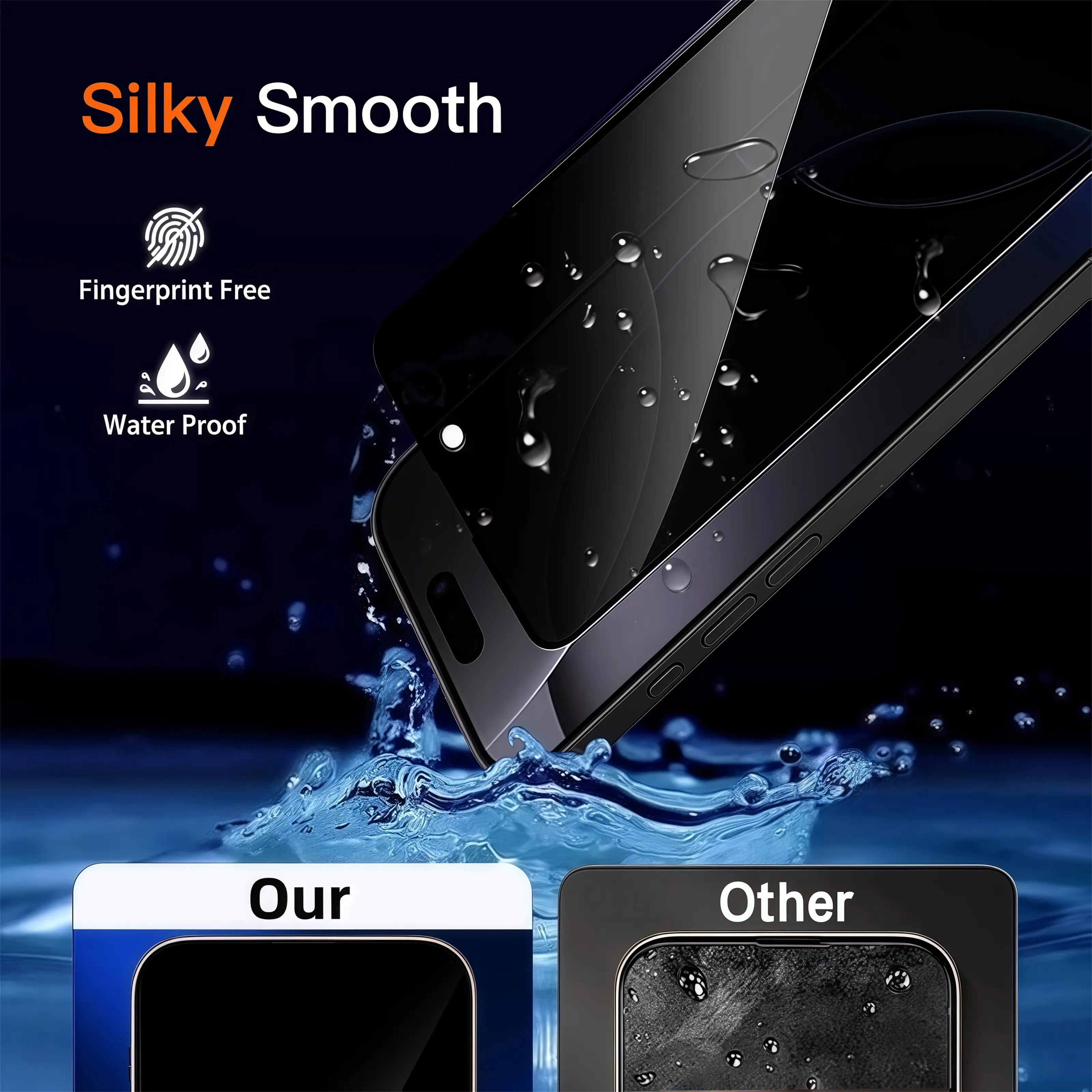 Scratch Resistant Anti-Fingerprint New precise laser cut tempered glass, with 9H hardness tempered glass, protecting your screen from daily wear and tear like. This privacy glass screen protector is coated with a Hydrophobic and oleophobic clear layer making it anti-fingerprint and smudges.