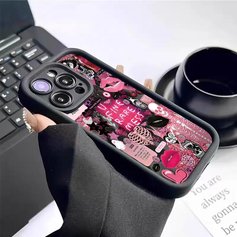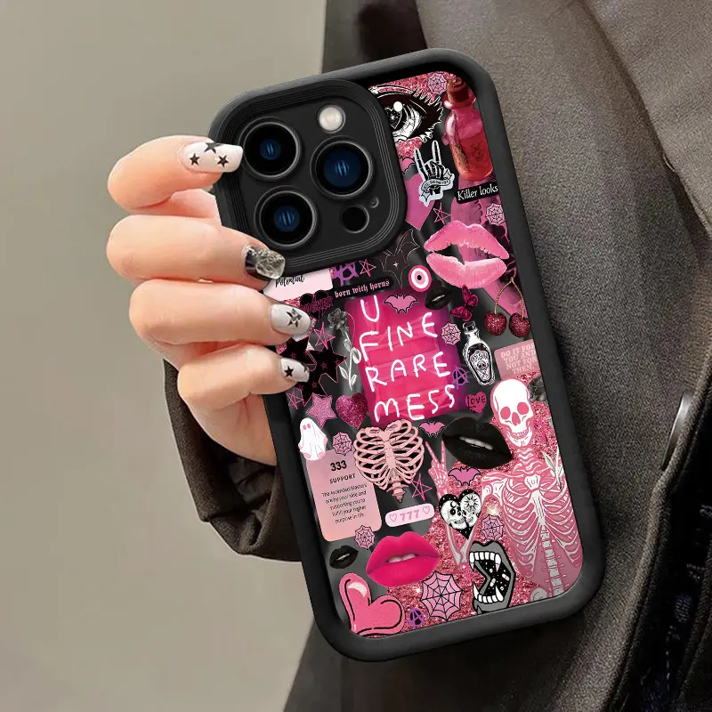 Phone Case Featuring a Collage Pattern of European And American Skulls, Lip Prints, And Eyes, Made from Durable TPU for Protect,Compatible with Various for iphone Models Including 17 16 15 14 13 12 11 PRO MAX PLUS,AIR Mini SE and iPhone XS MAX,