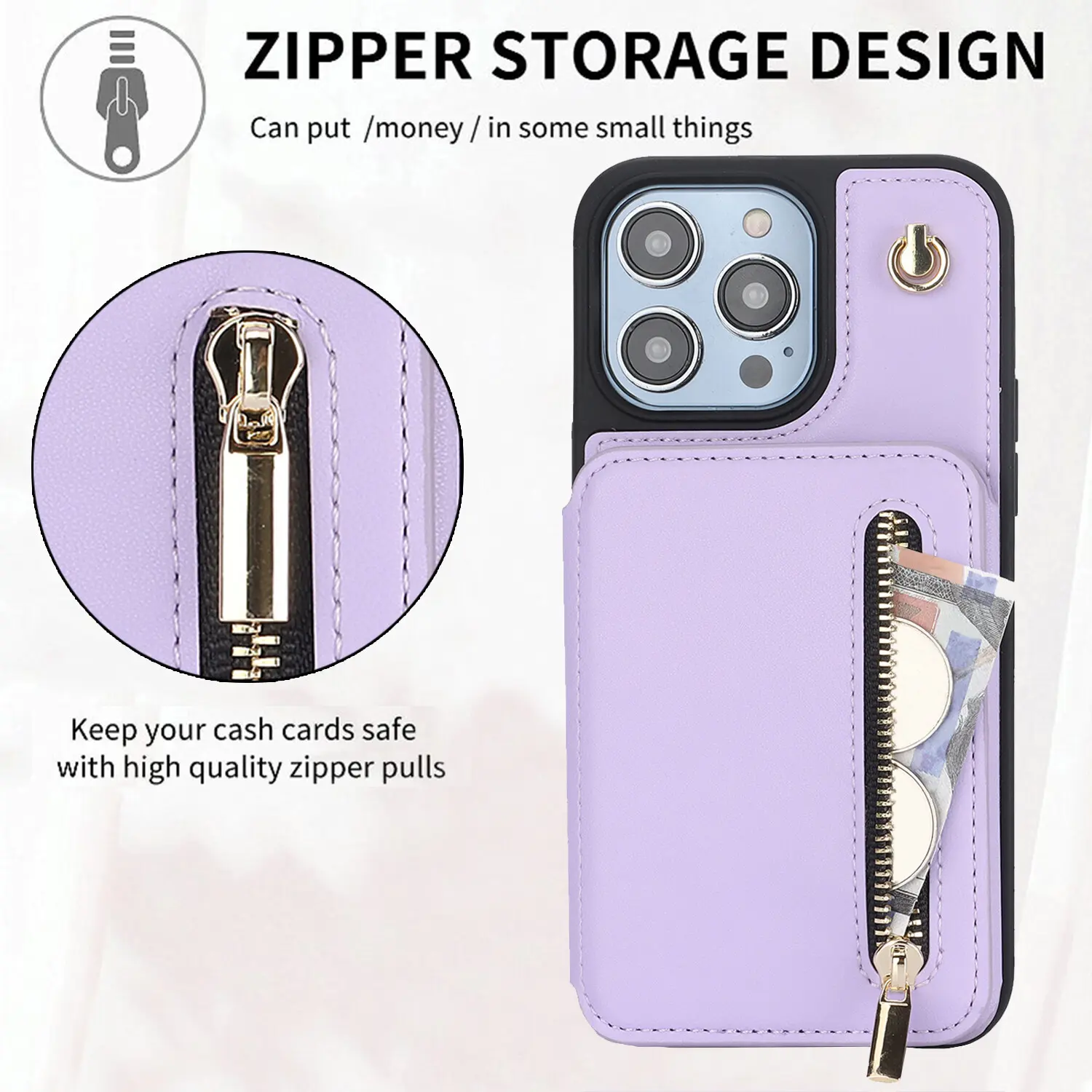 Ever wish your phone case could do more than just protect? Meet this stylish wallet case designed for iPhone 17 Pro Max and compatible with models back to iPhone 11. Crafted from premium PU leather, it offers RFID blocking to keep your cards safe from digital pickpockets. The case features handy credit card slots and a cash holder, so you can leave your bulky wallet at home. Need to catch a quick video or FaceTime? Flip open the case’s built-in stand to free your hands. Plus, it comes with a fashionable crossbody strap and wristband for secure, hands-free carrying whether you're running errands or out with friends. The zipper design adds extra protection against drops and scratches. Available in several chic colors like Rose Gold, Black, and Purple, this case is as versatile as your lifestyle. Inside the box, you’ll find the wallet case, crossbody strap, and a wrist strap ready to go. Ready to upgrade your phone protection and style? Grab this all-in-one wallet case and keep your essentials close with flair!