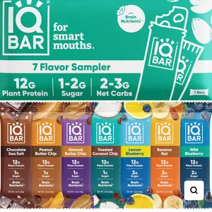 IQBAR 7 Flavor Sampler Pack - 7 Plant Protein Bars in All Different Flavors - Protein Packed Snack with Brain Nutrients 12G Plant Protein 1-2G Sugar 2-3G Net Carbs