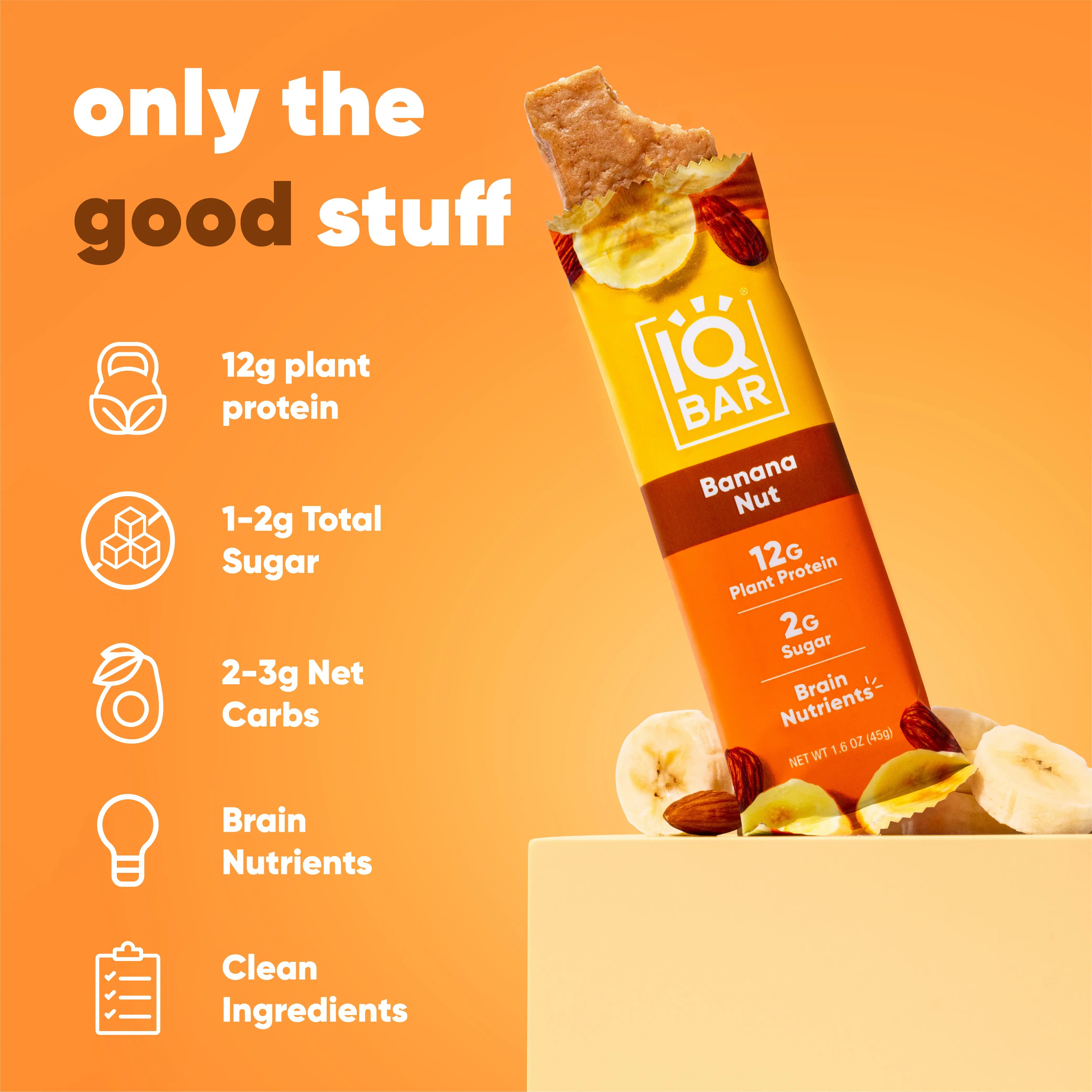 ·14 Brain-Boosting Nutrients in Every Snack Bar - IQBAR clean vegan protein bars are packed with Lion’s Mane, MCTs, Omega 3, Flavonoids, Vitamin E & Choline. We use a science-backed formulation to provide you with healthy & tasty nutrition bars for your active & busy lifestyle