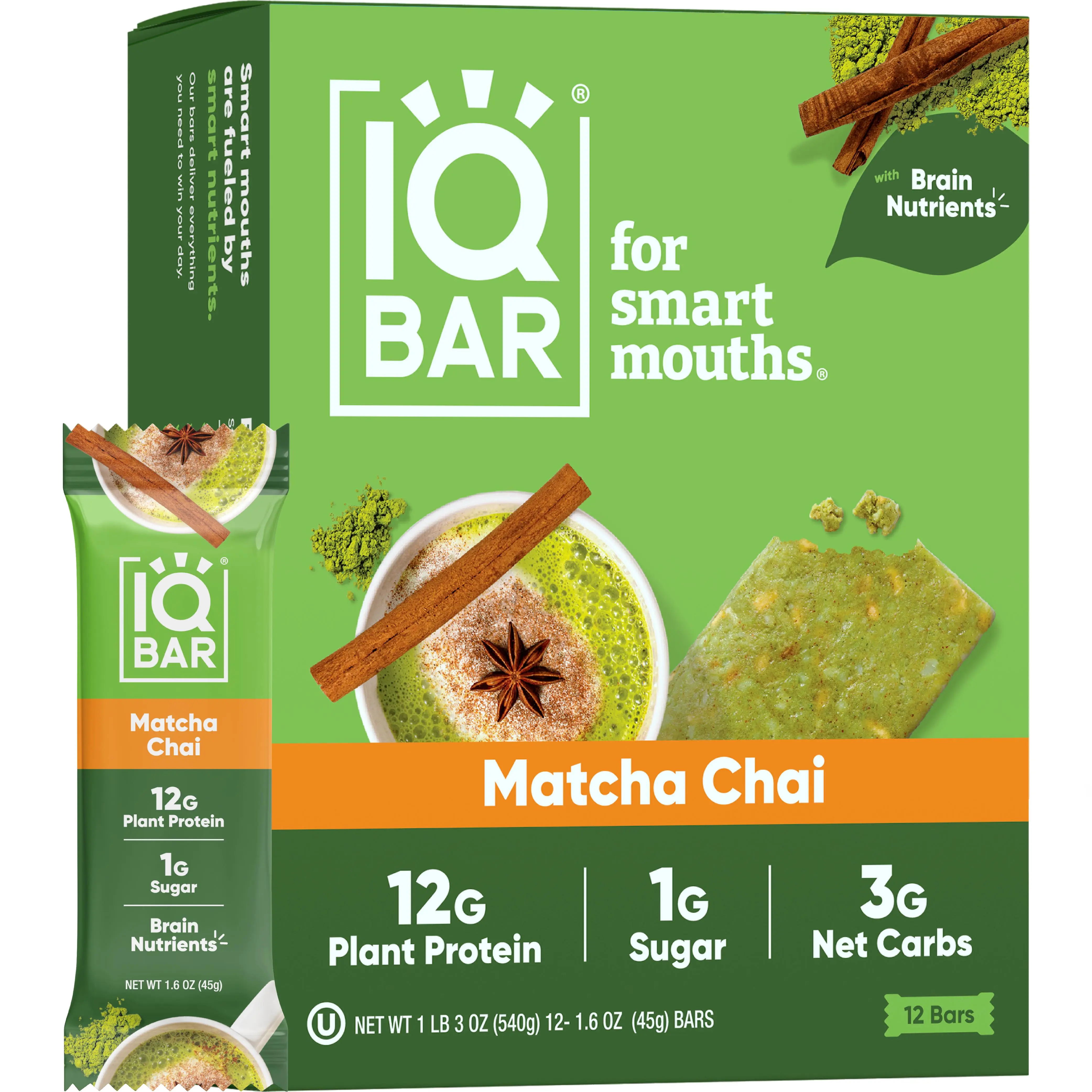 ·KETO FRIENDLY SNACKS w/ Only 3g Net Carbs in Every Serving - Net carbs are carbs that are absorbed by the body, and our keto treats come with only 3g of net carbs in each bar. Each plant based protein bar is packed with 9g of total carbs, 6g of fiber, 13g of fats & 180 calories. Our Matcha Chai bar offers an exotic, multi-dimensional flavor you simply won't find elsewhere