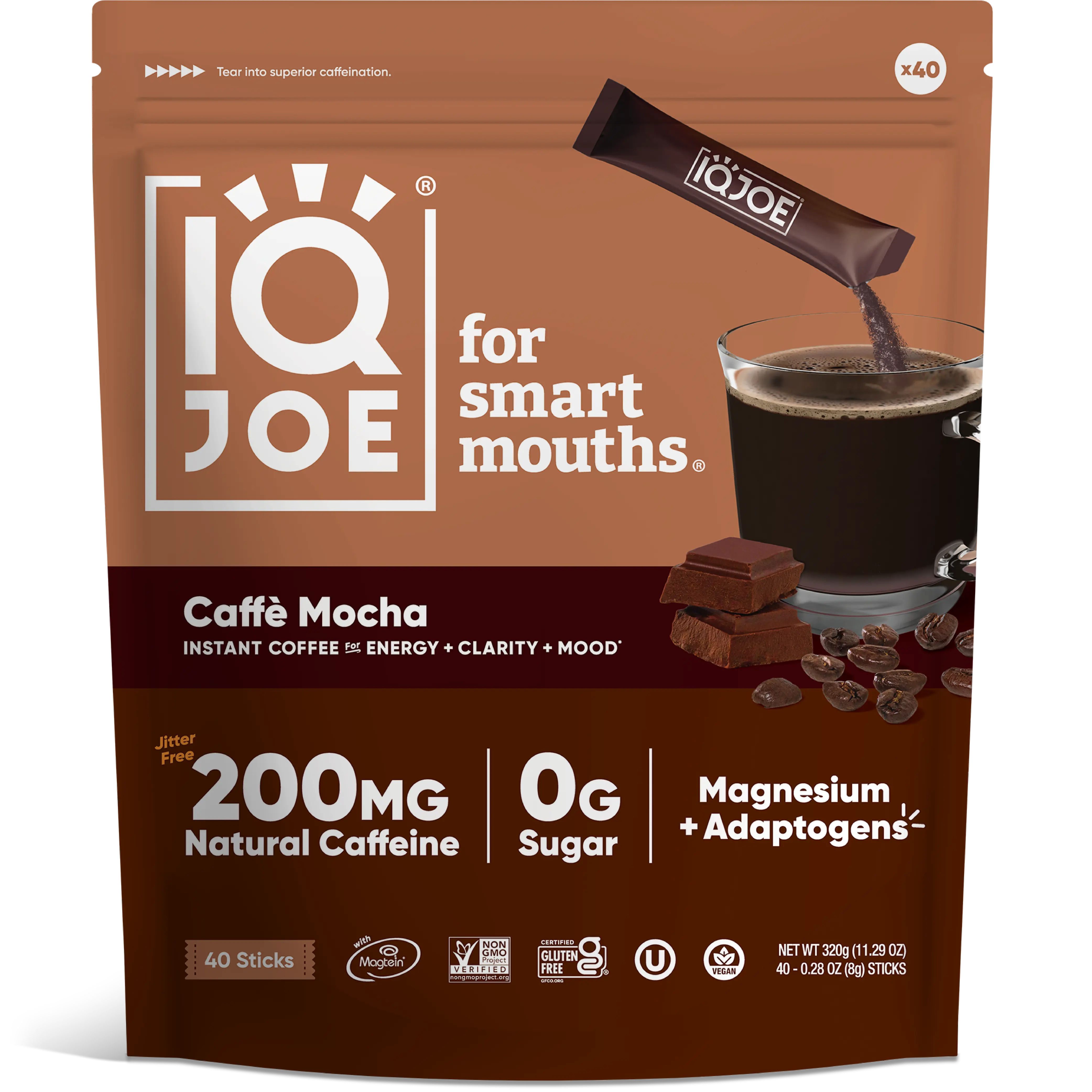 ·EASY TO MAKE: Our single serve coffee packets are quick and easy to make - just mix one individual packet with 8-12oz of hot water. A great option for camping or travel coffee. Whether you're looking for a clean energy boost at home, work, or on-the-go, IQJOE coffee singles have you covered. Our naturally flavored Caffè Mocha instant coffee is rich, velvety medium chocolate that’ll tickle your tastebuds