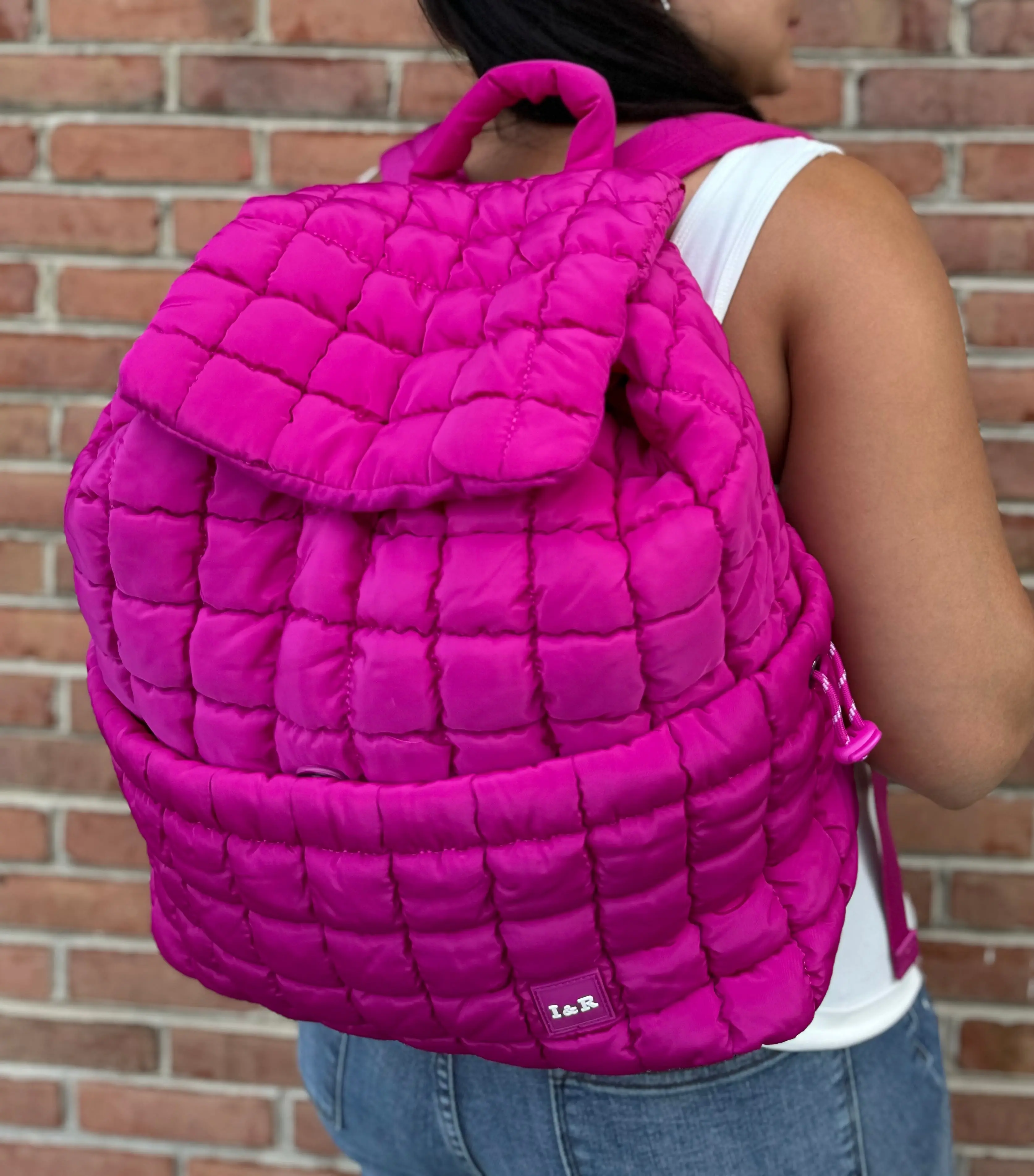 I am not usually a bright colored bag person but this hot pink puffy backpack was totally calling my name. It was on a flash sale so double bonus. Iโm so glad I ordered it because it is freaking awesome and I loved the little free gift matching hot pink, classic iris wallet