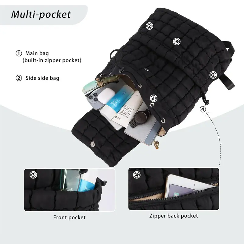 With its soft quilted texture, inclusive fit, and stylish minimalist design, the Iris Puff Backpack is more than just a bag — it’s your go-to fashion companion for daily life.