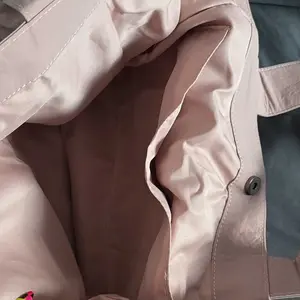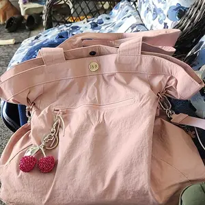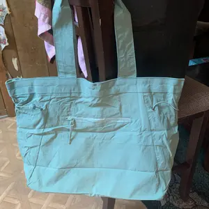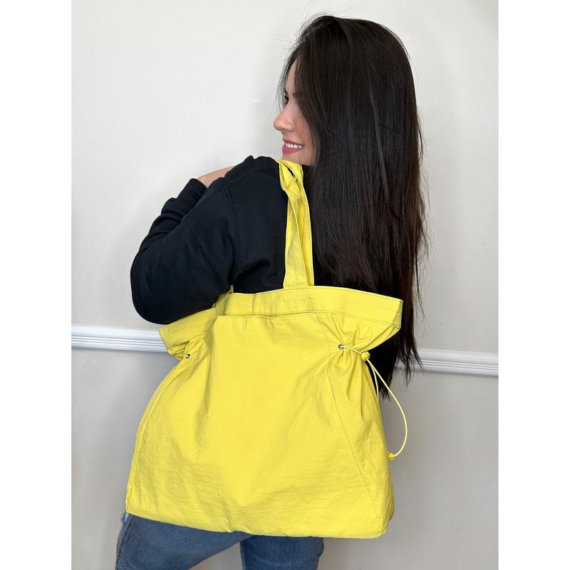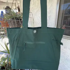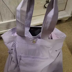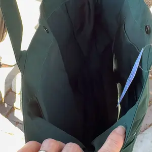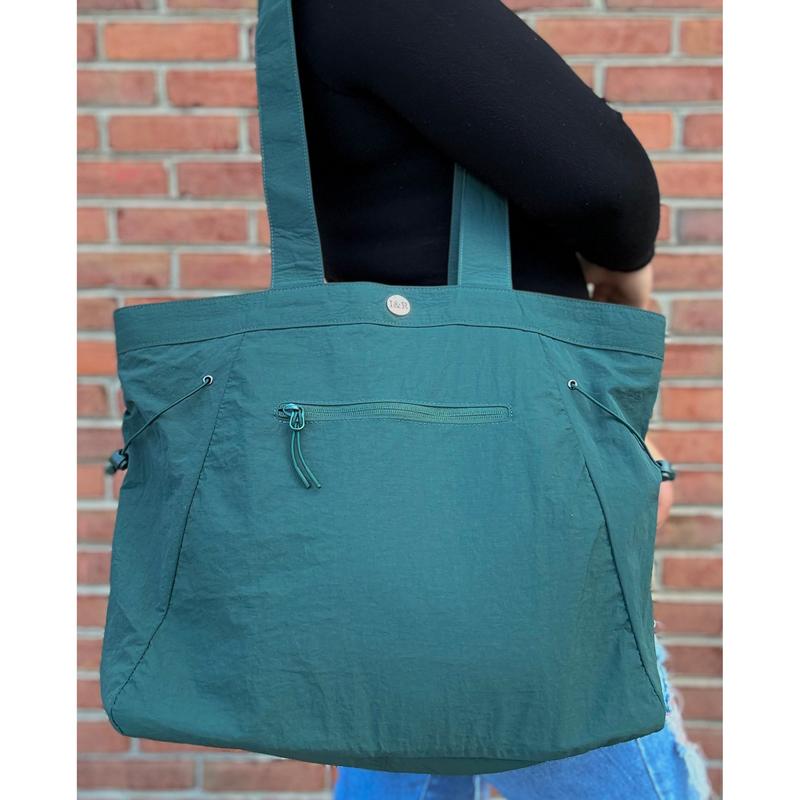 At first I couldn’t wear this tote shoulder bag since the shoulder straps felt short. But I figured out a way to make it work with my crossbody strap. I love this bag! The fabric is durable & reminds me of the “swishy” term we used for the adidas brand running pants back in the day lol! Great color!