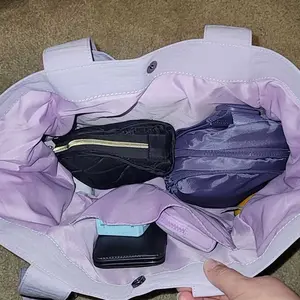 I love this bag sooo much. I have all my stuff in it and I keep my other little bag in it just incase so I don't have to bring in my whole bag. It also fits my Samsung tablet in the out side pocket. I have so many bags from yall that it's hard for me to pick which one I want to use for the day/week.