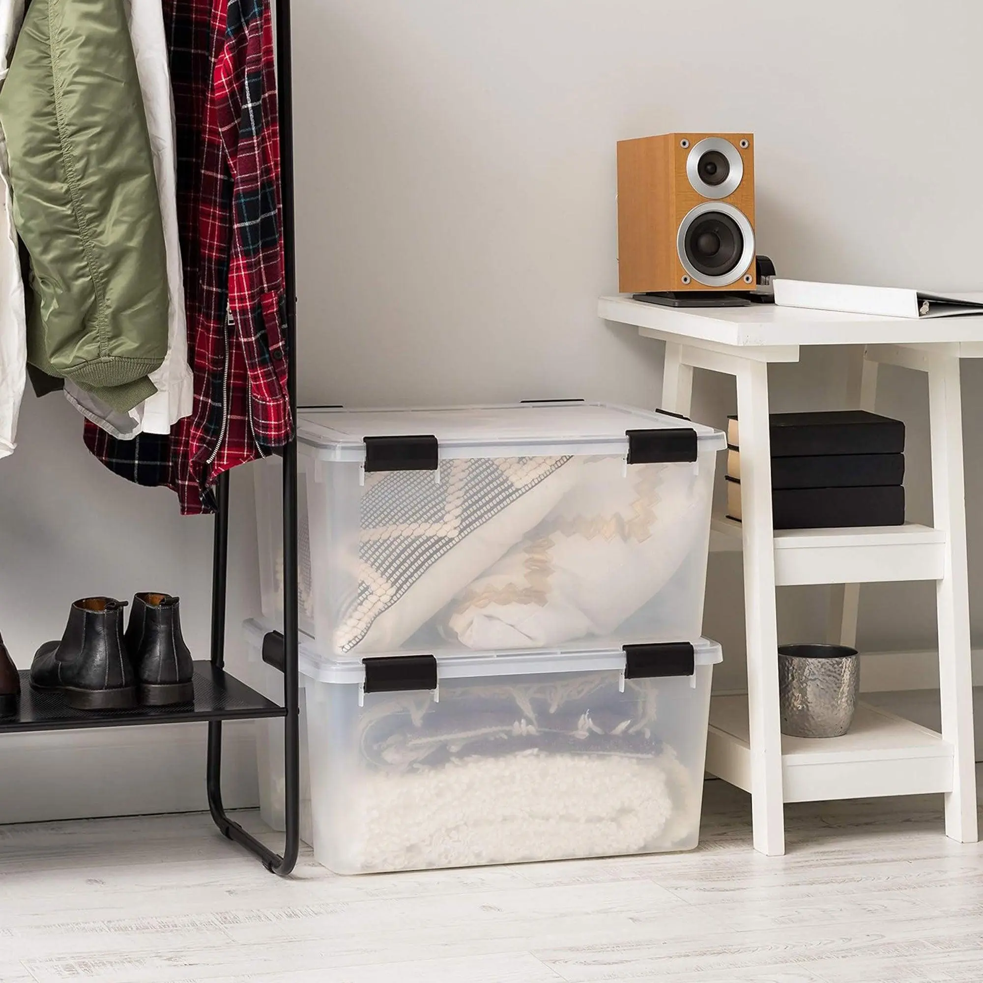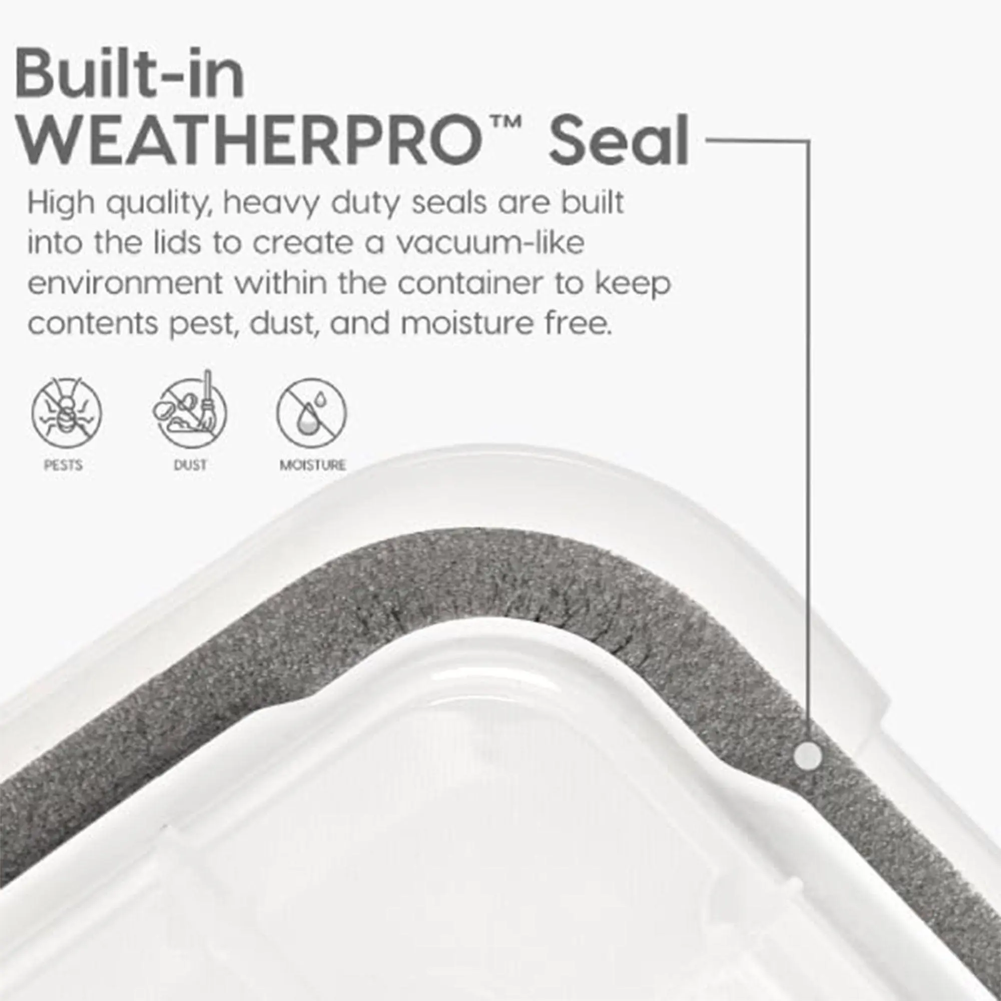 These bins feature top-notch seals in the lid that create a vacuum-like environment to lock out moisture, dust, and more