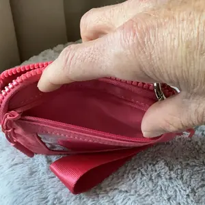 Adorable! Fits in most of my I&R bags. Holds more than one card in each card slot. LOVE that it’s a wristlet and RFID protected! And for the holidays, this is the perfect print for a pink girlie 💞
